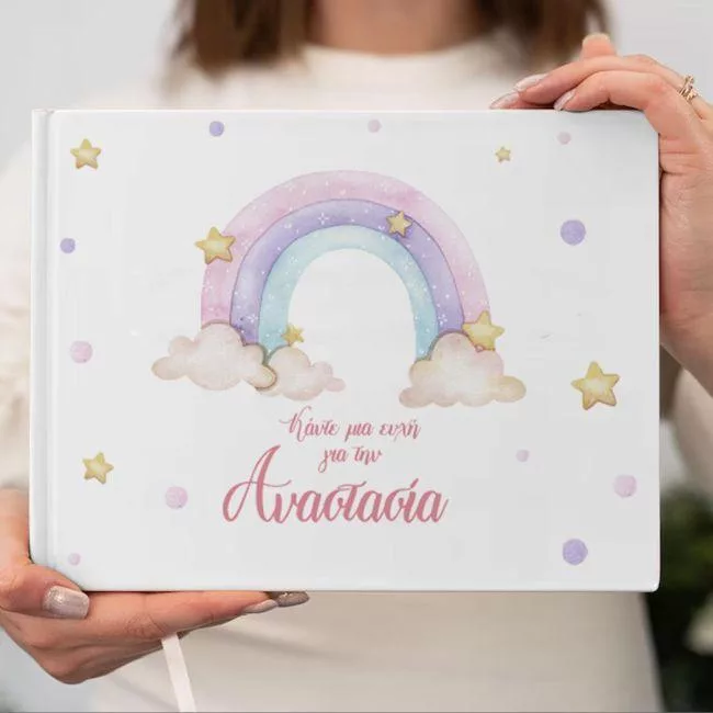Wishes book, Rainbow painted with clouds, personalized