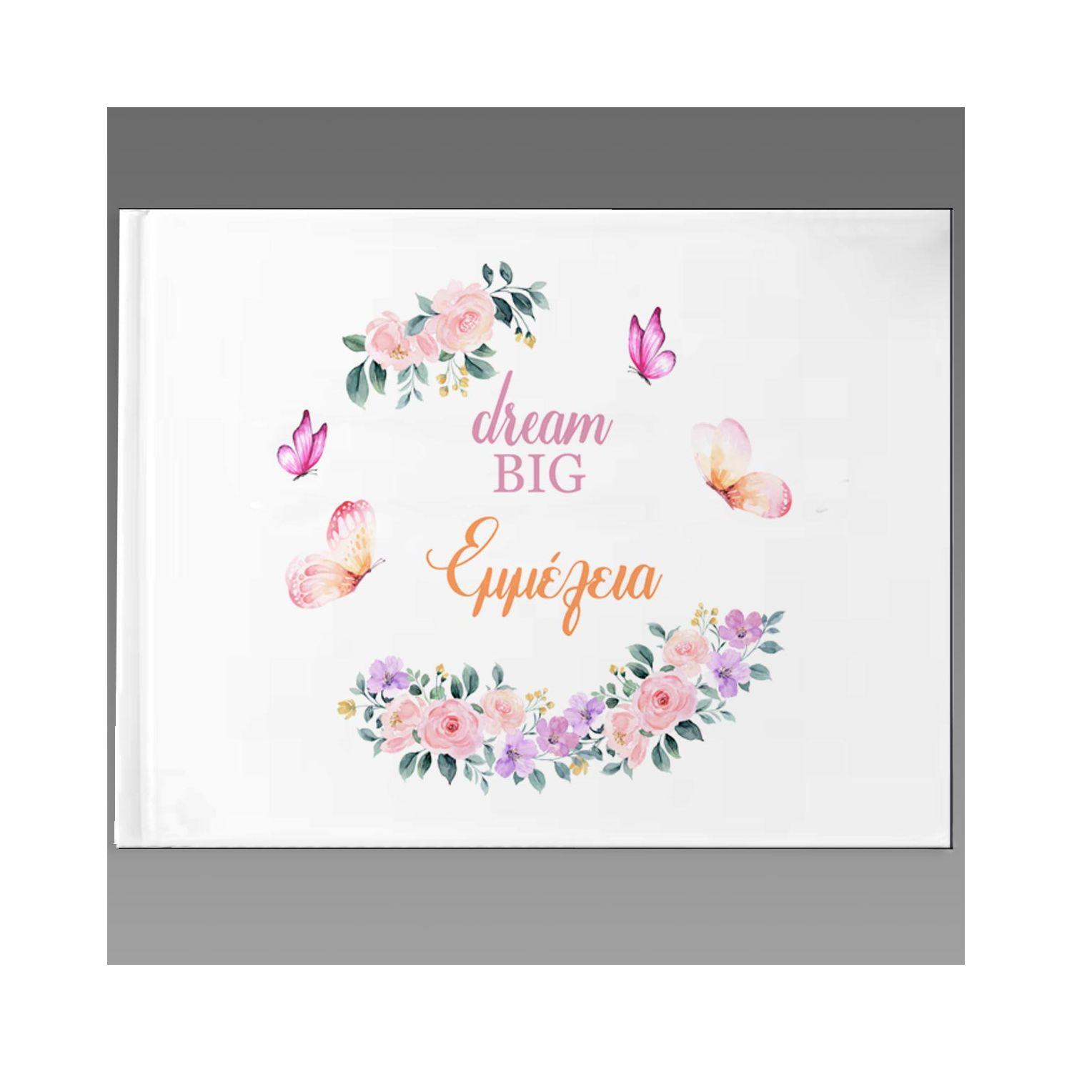 Wishes book, Butterflies and flowers, personalized