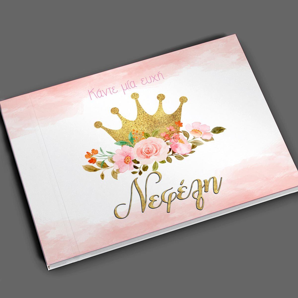 Wishes book, Golden crown and flowers