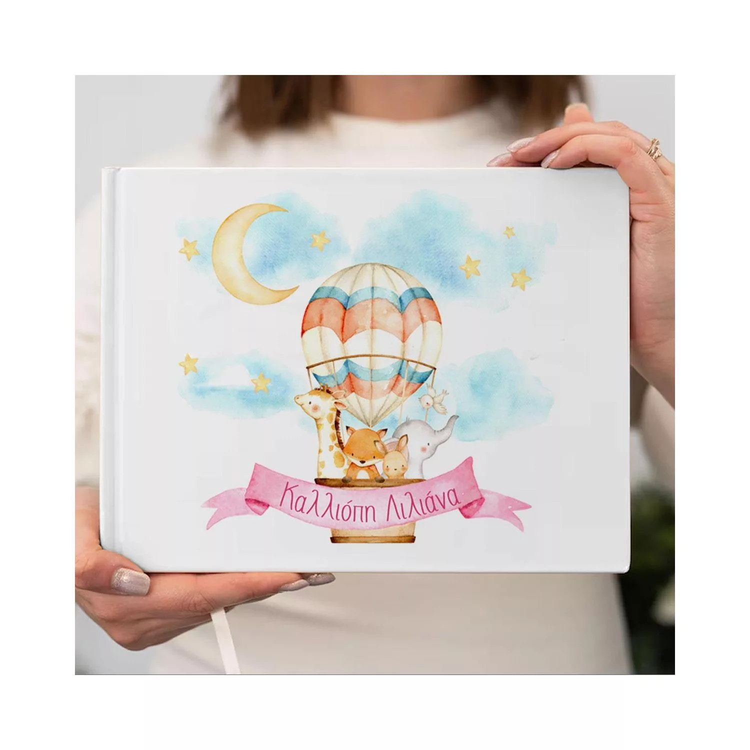 Canvas print welcome to my baptism , Air balloon & animals watercolor