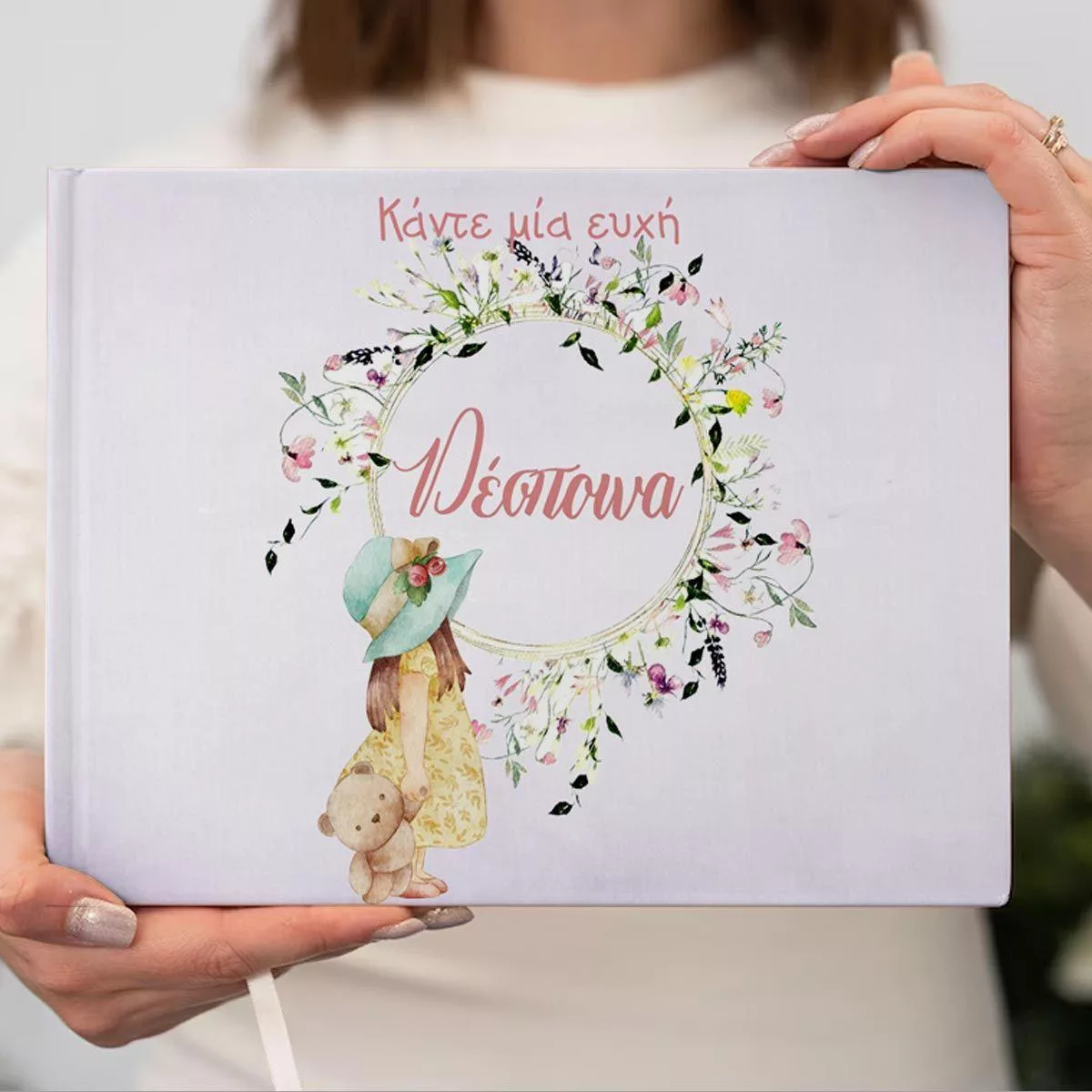 Wishes book, Vintage little girl and flowers