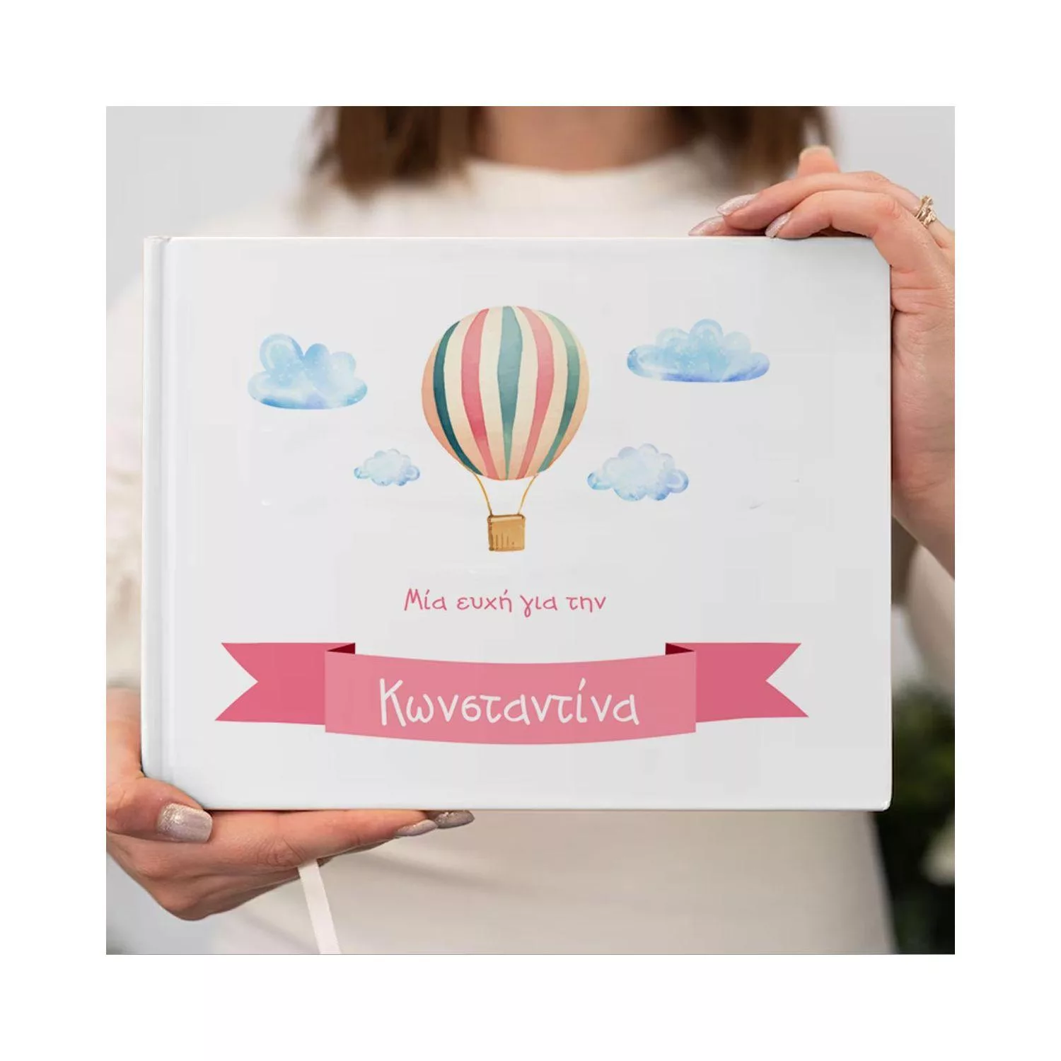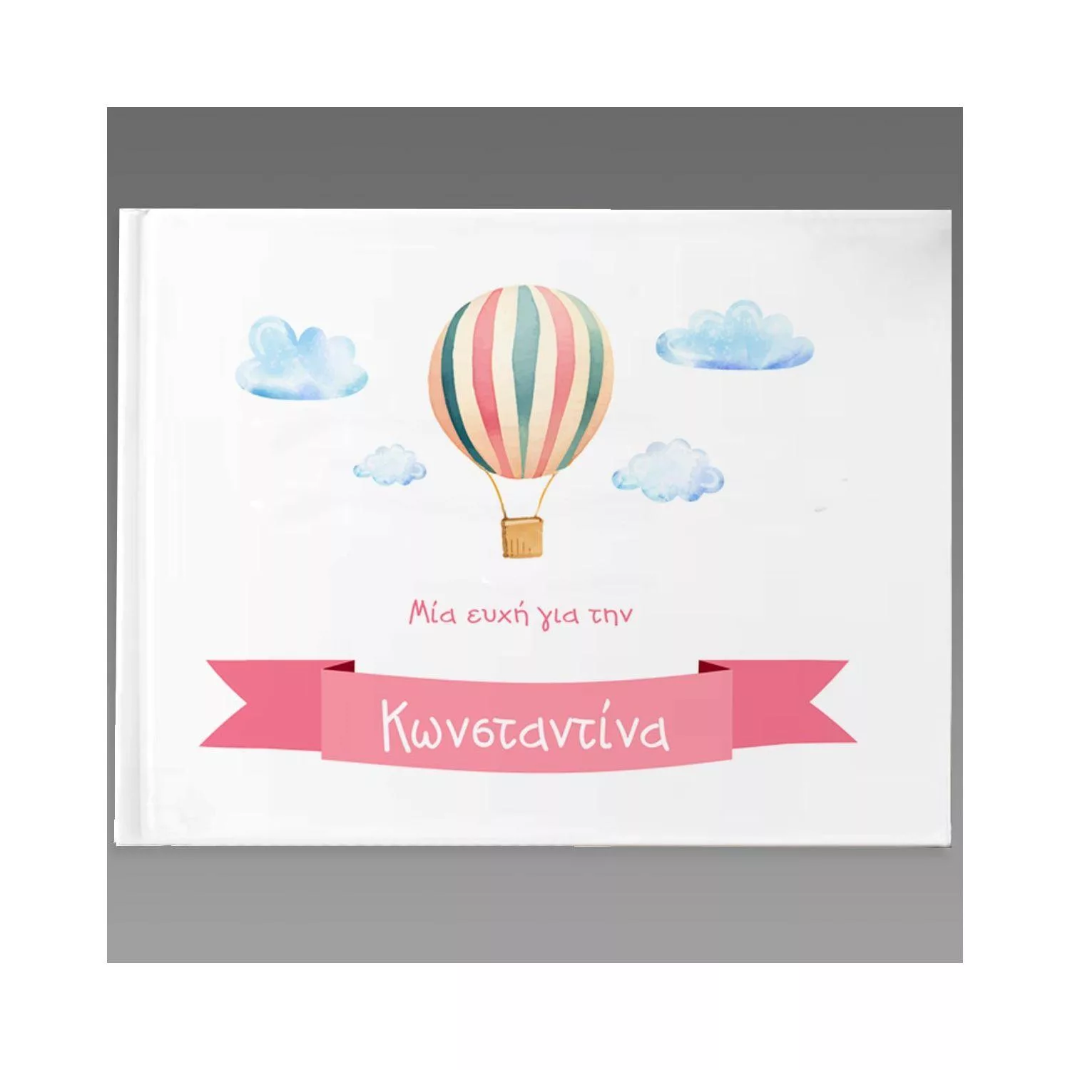 Wishes book, Watercolor balloon with name, pink 2