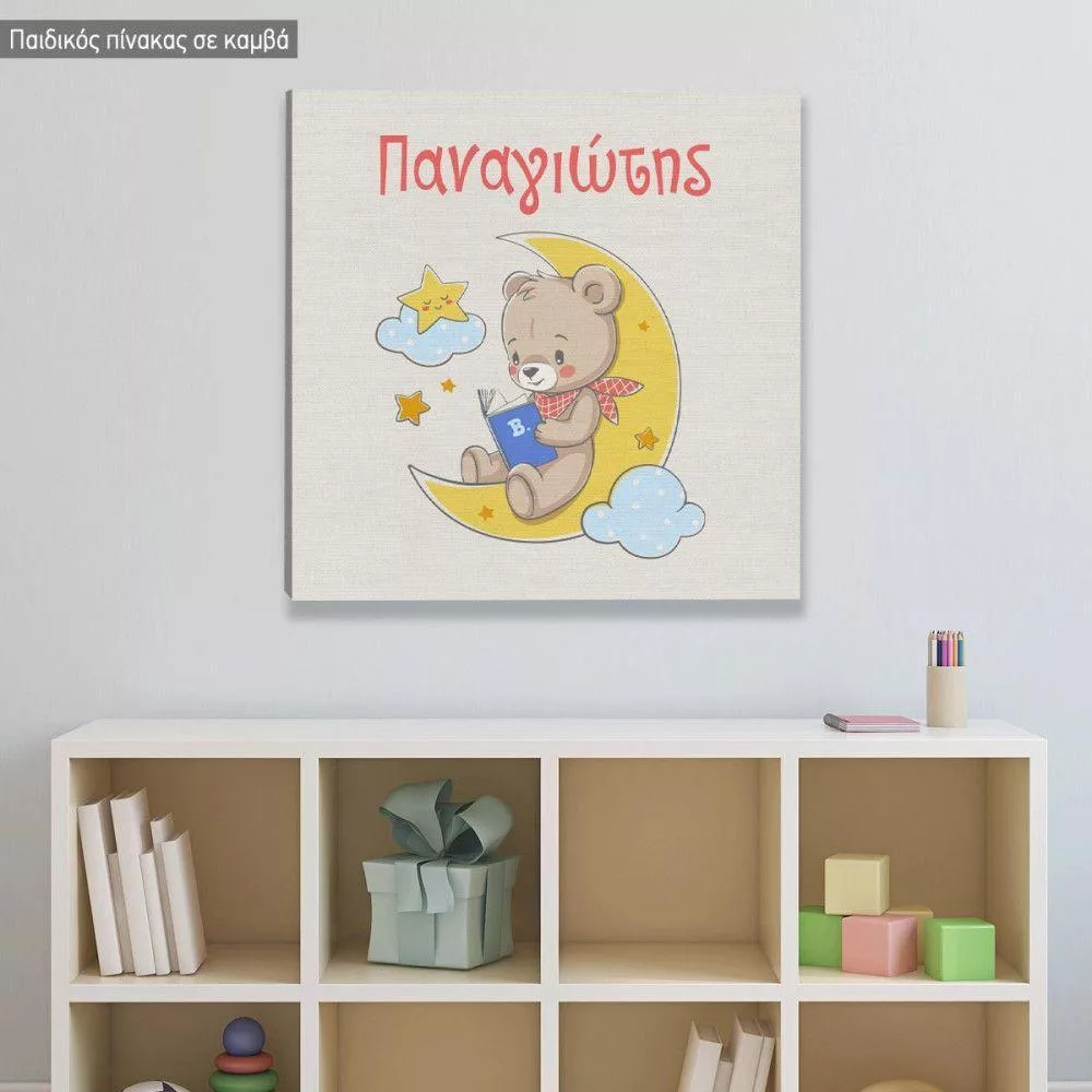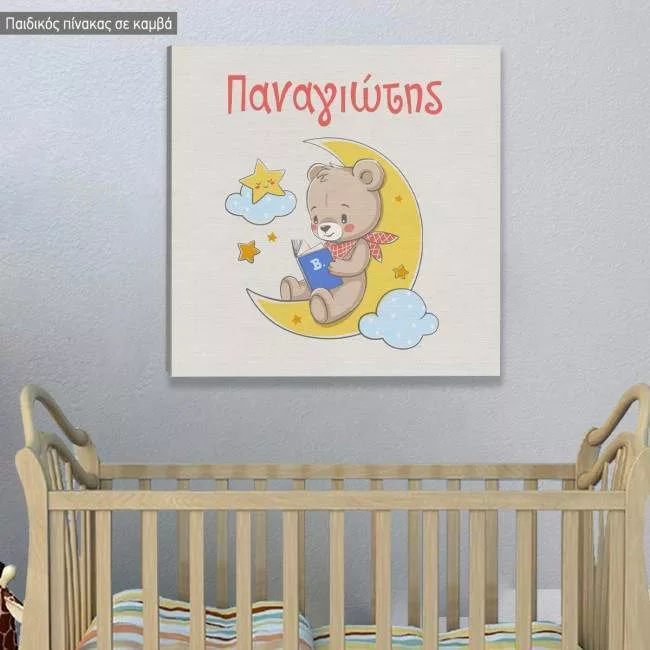 Kids canvas print Bear at moon with name