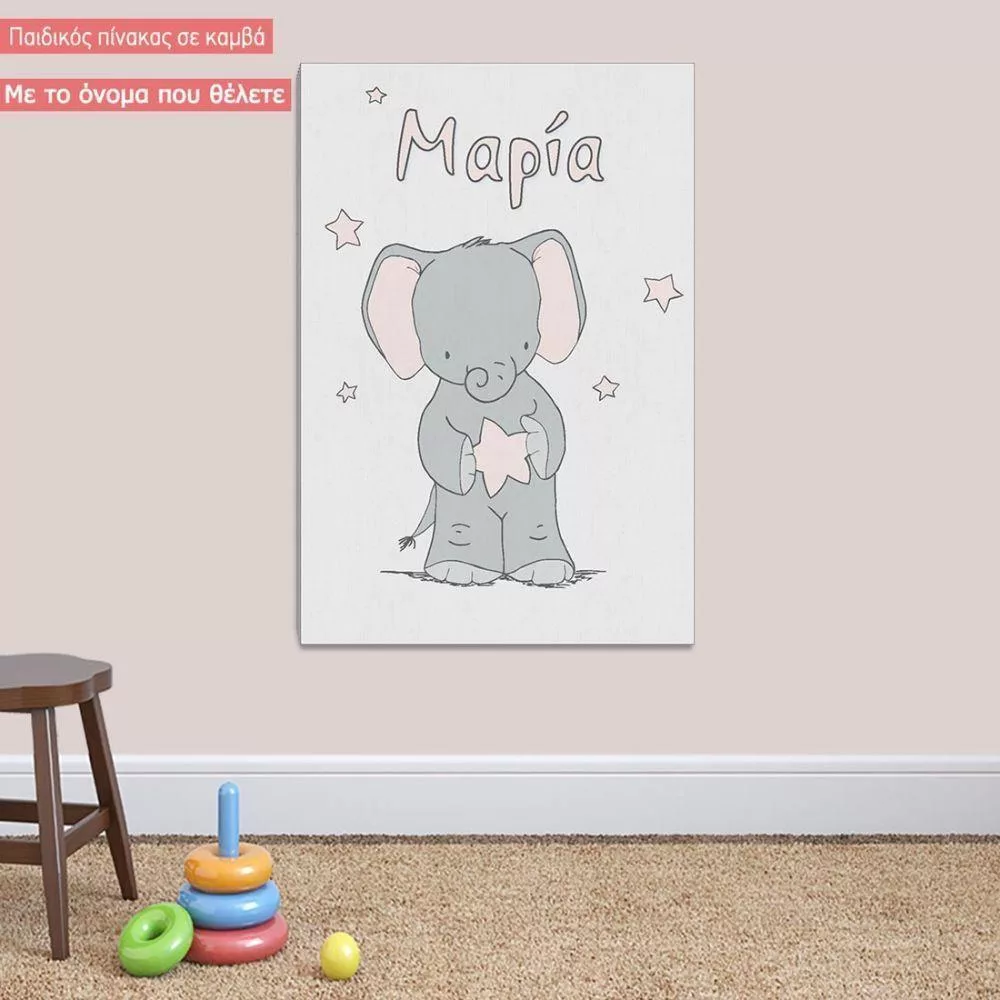 Kids canvas print Reach for the stars, little elephant and stars