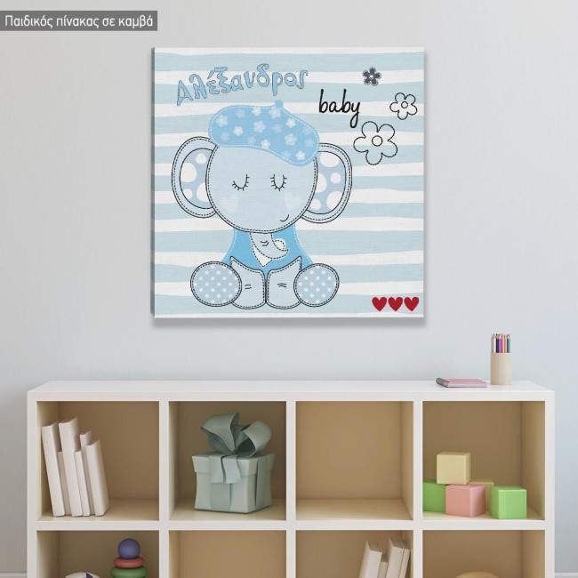 Kids canvas print elephant baby boy with name