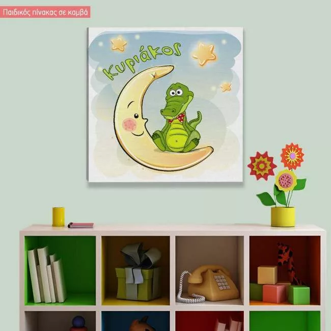 Kids canvas print At moon, croc, with stars with name