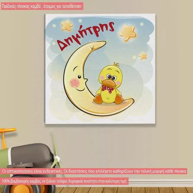 Kids canvas print At moon, duck, with star swith name
