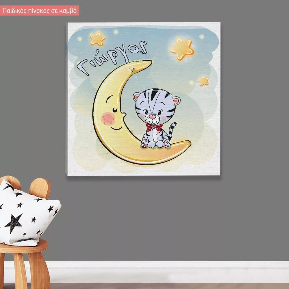 Kids canvas print At moon, tiger, starswith name