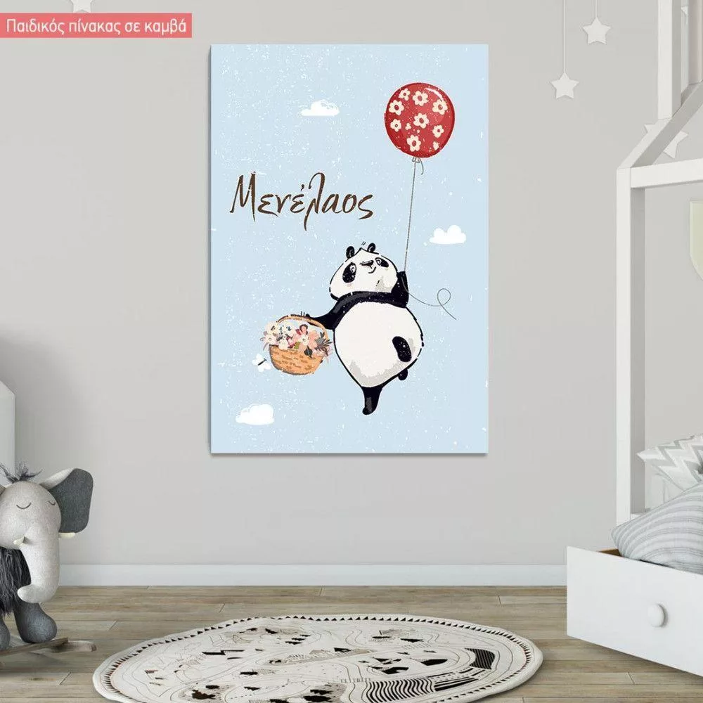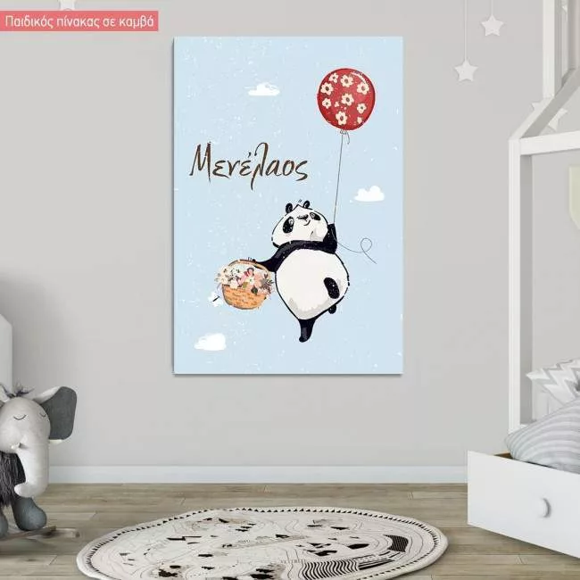 Kids canvas print Panda with balloons at clouds