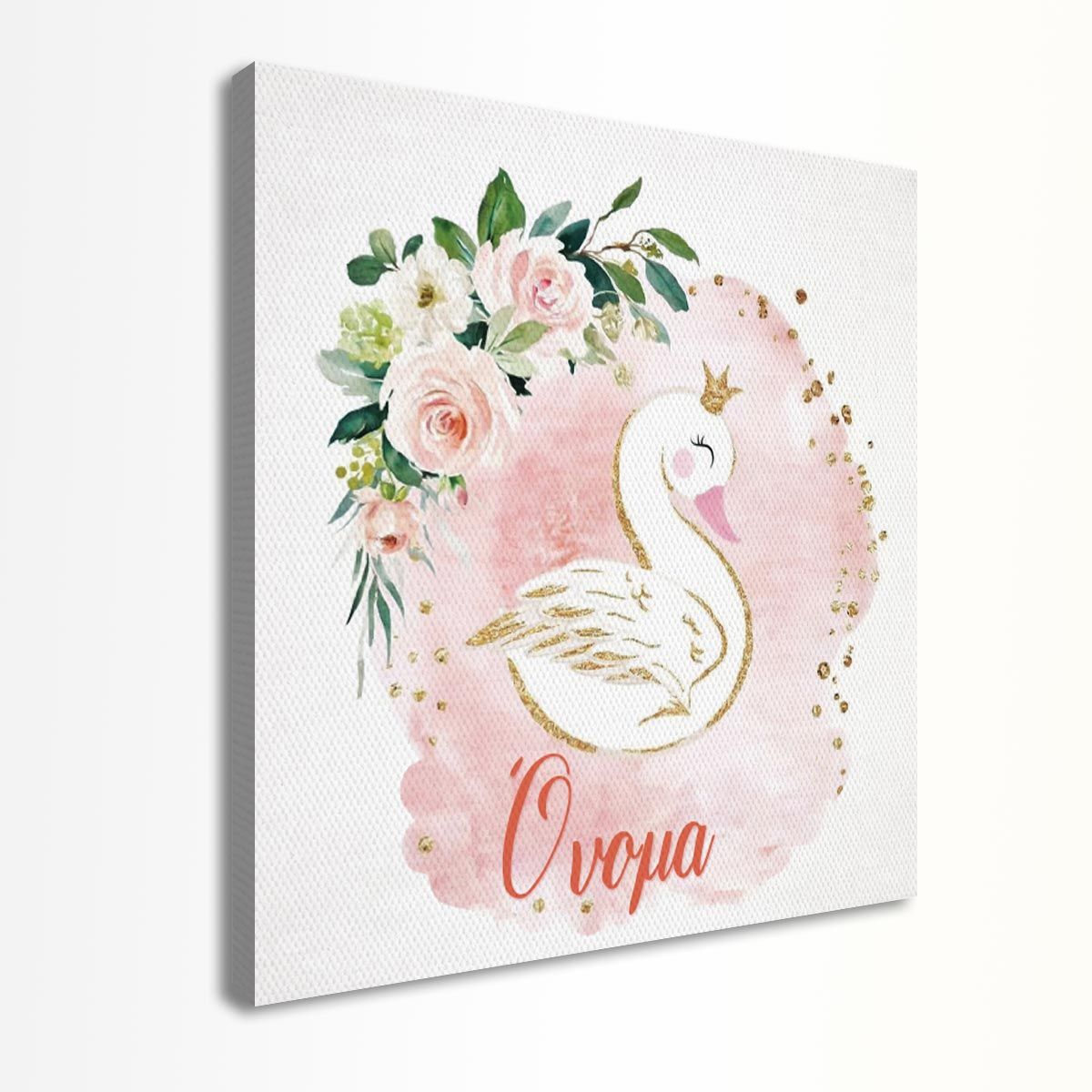 Wooden figure printed Swan flowers