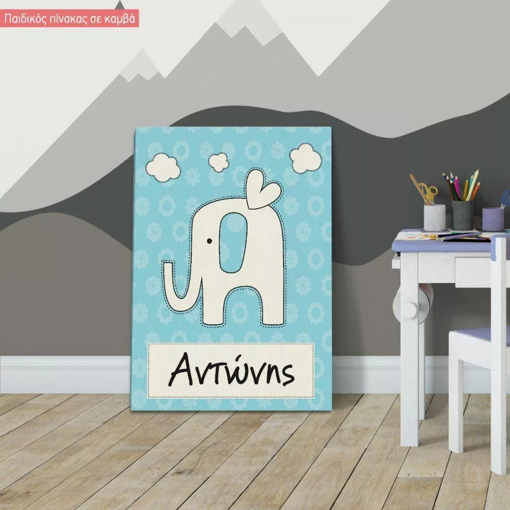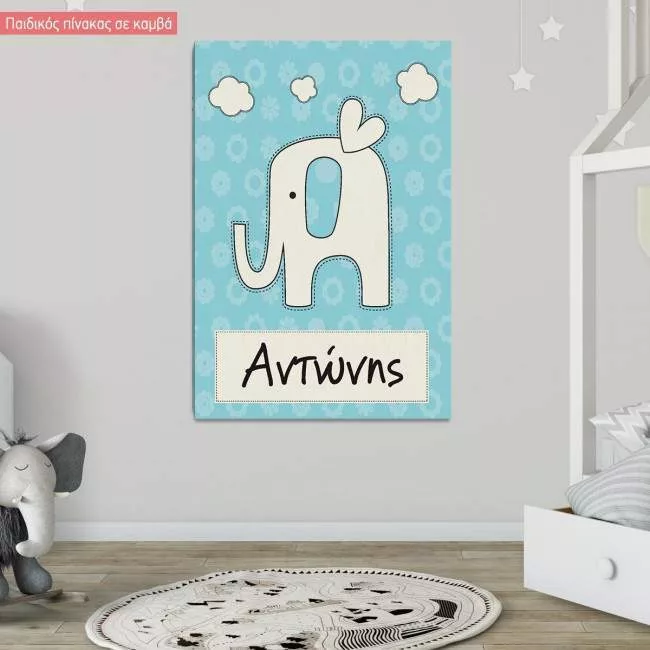 Canvas print little elephant with name
