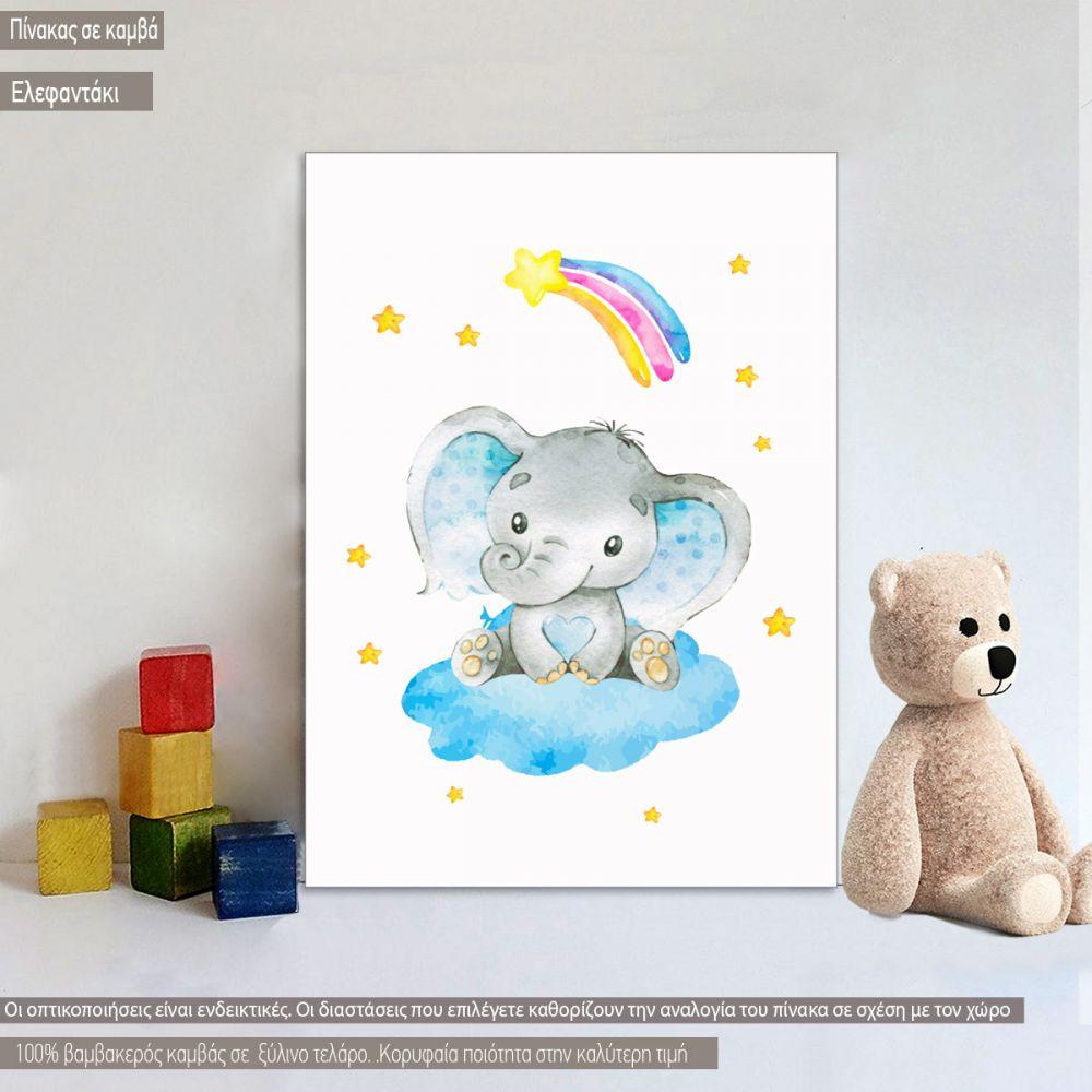 Kids canvas print Elephant watercolor blueish