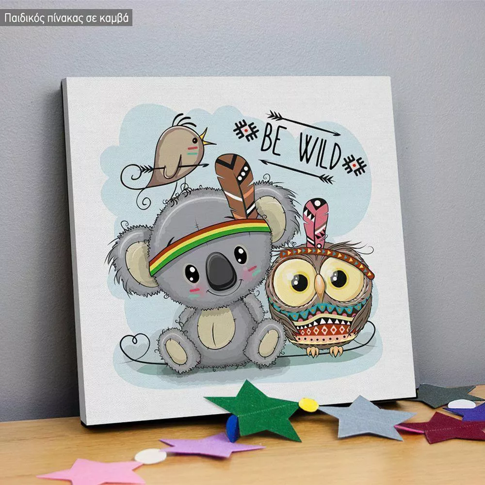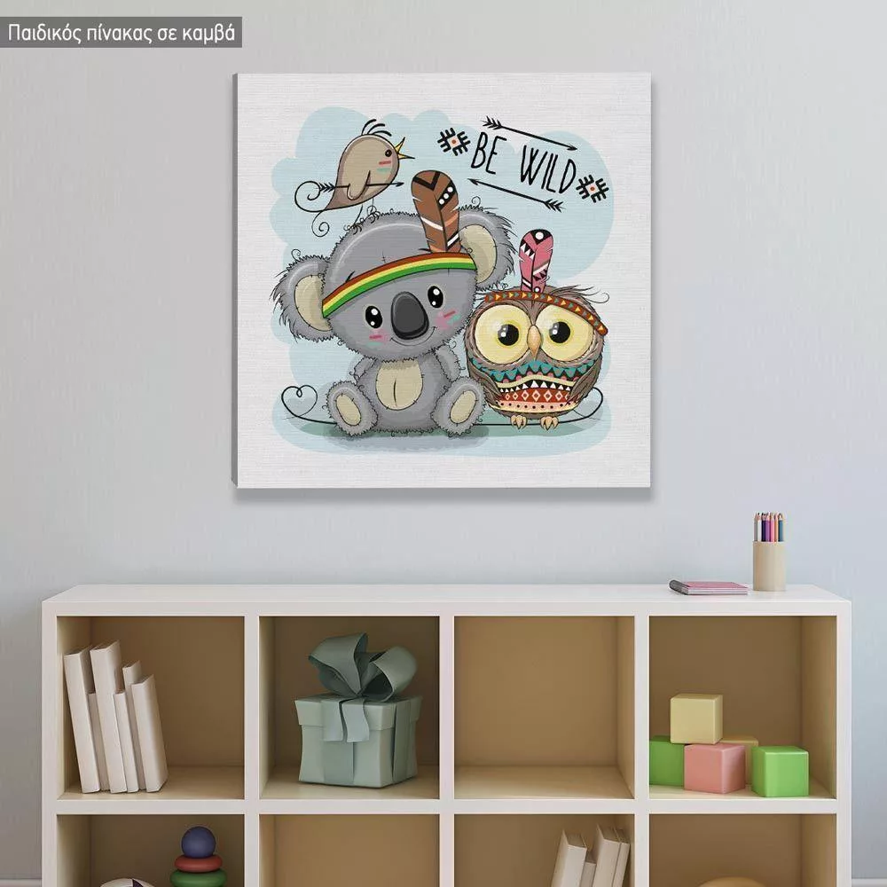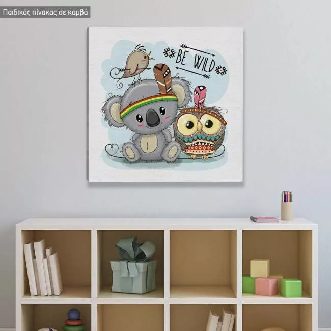 Kids canvas print Be Wild, Koala and owl tribal
