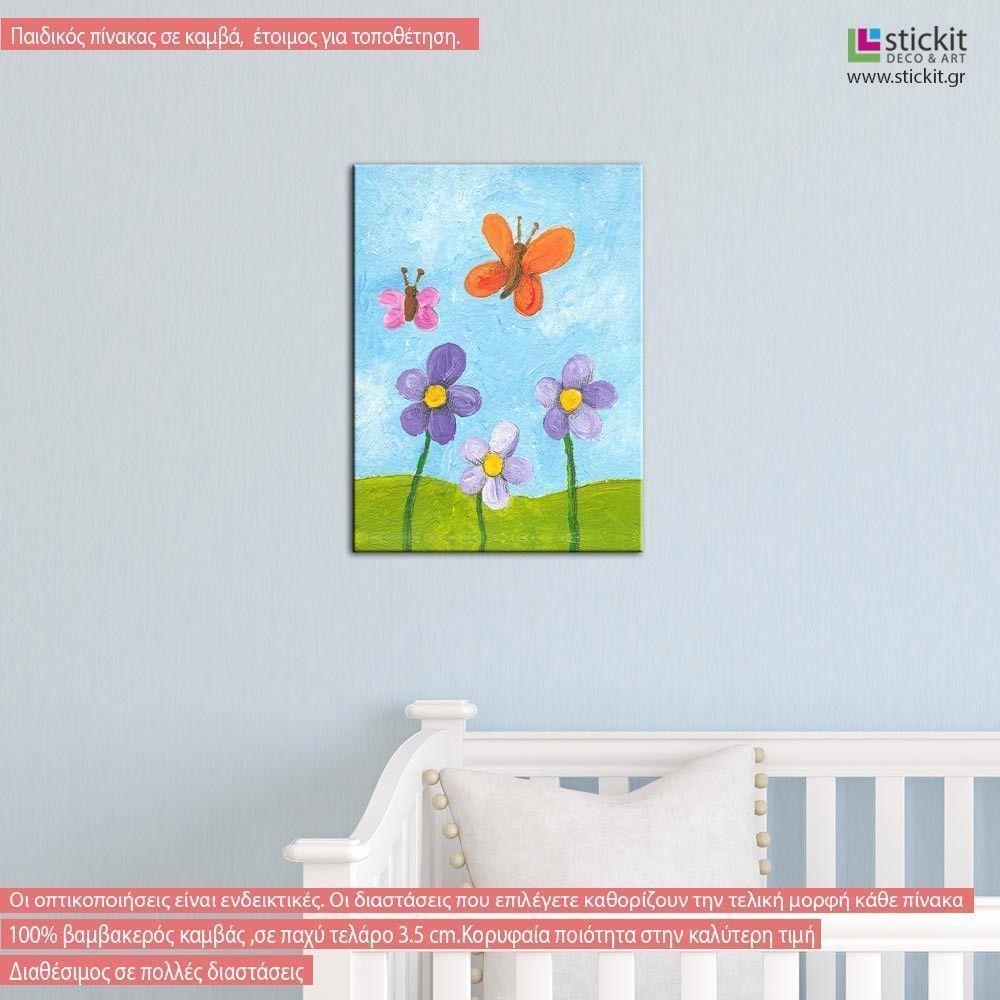 Kids canvas print Flowers and butterflies