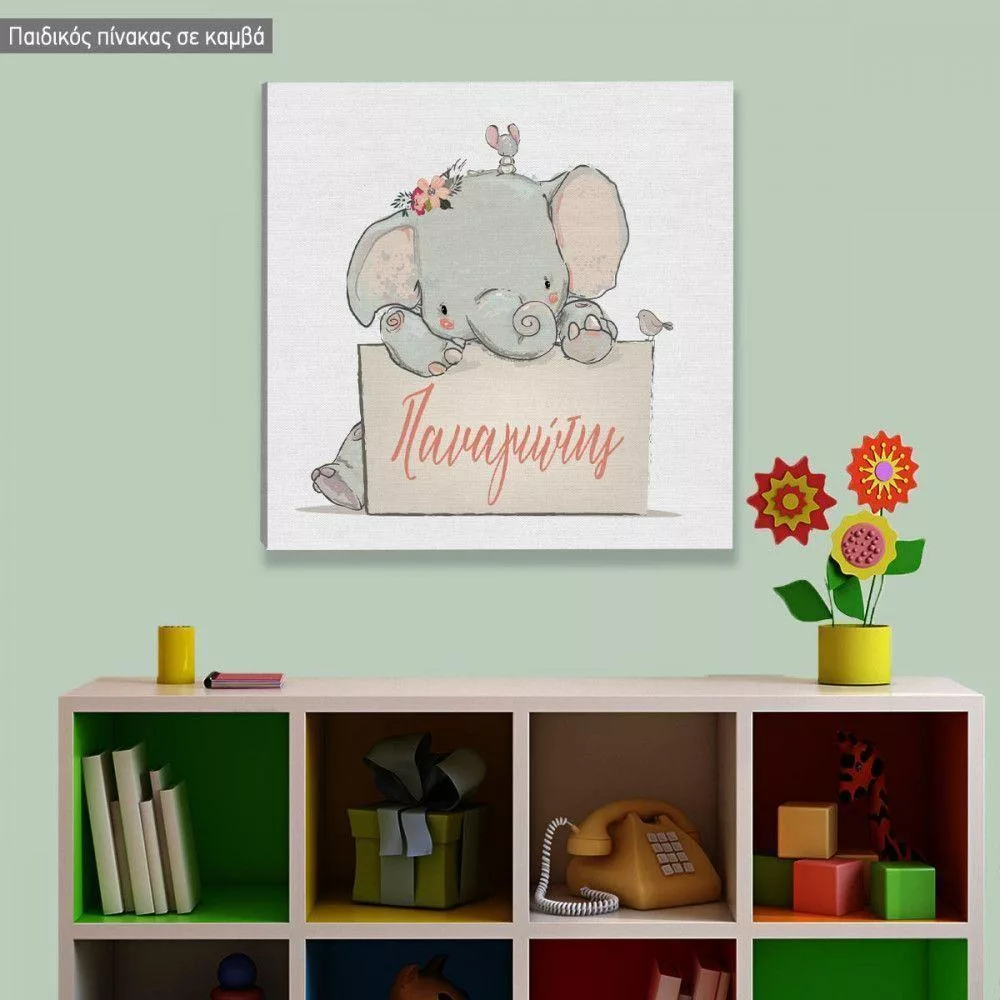 Kids canvas print Little lovely elephant with mouse and bird
