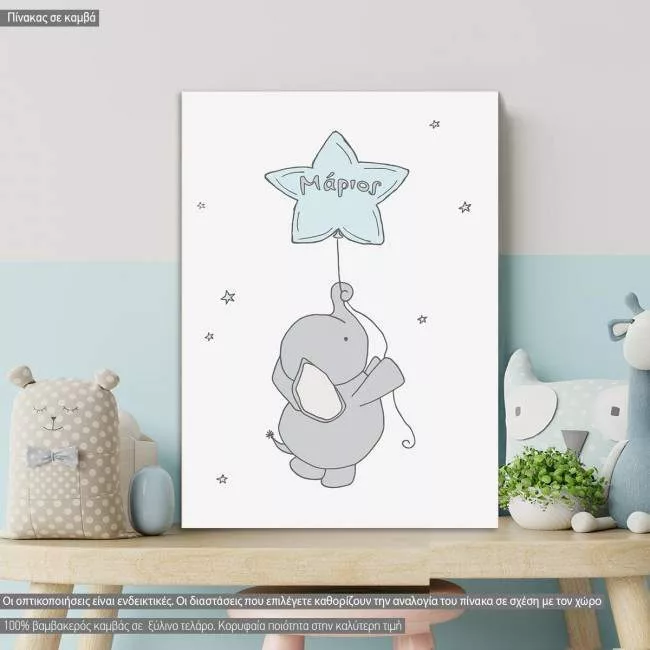 Kids canvas print Reach for the stars, little elephant and stars