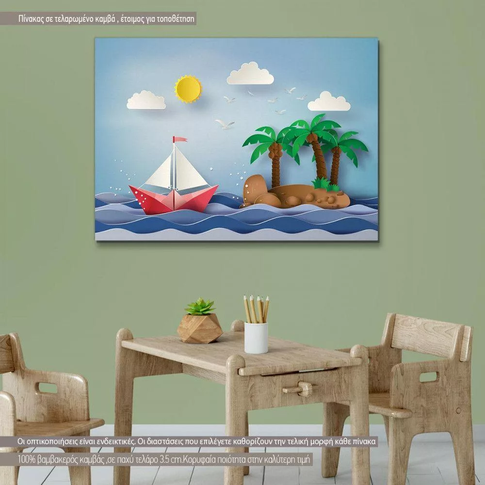 Kids canvas print Paper sailing boat and island