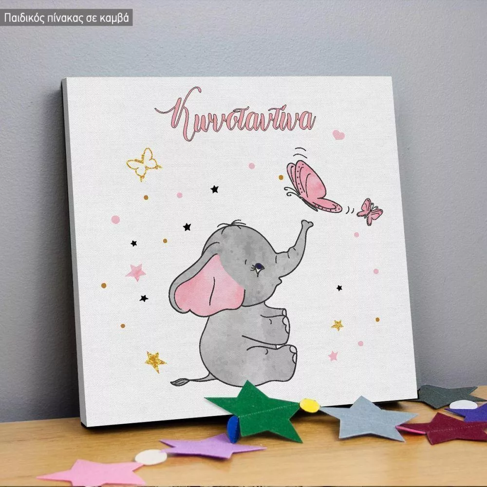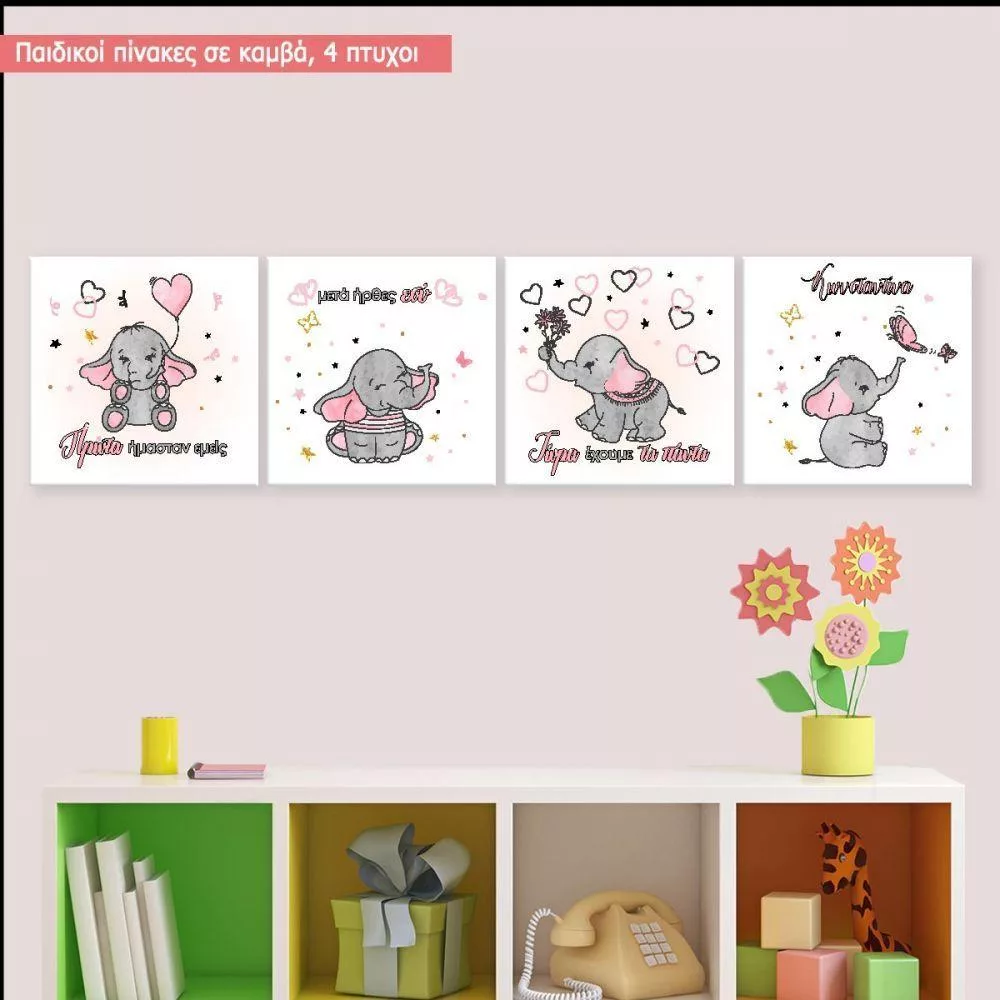 Canvas print First it was just us, little elephant, pink, 4 panels