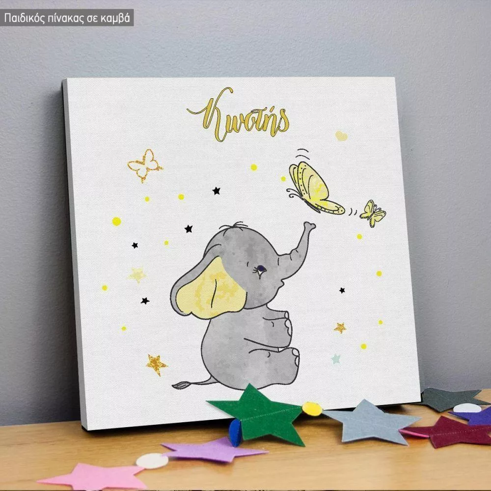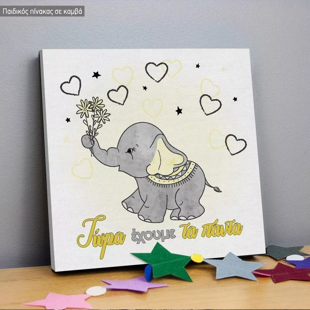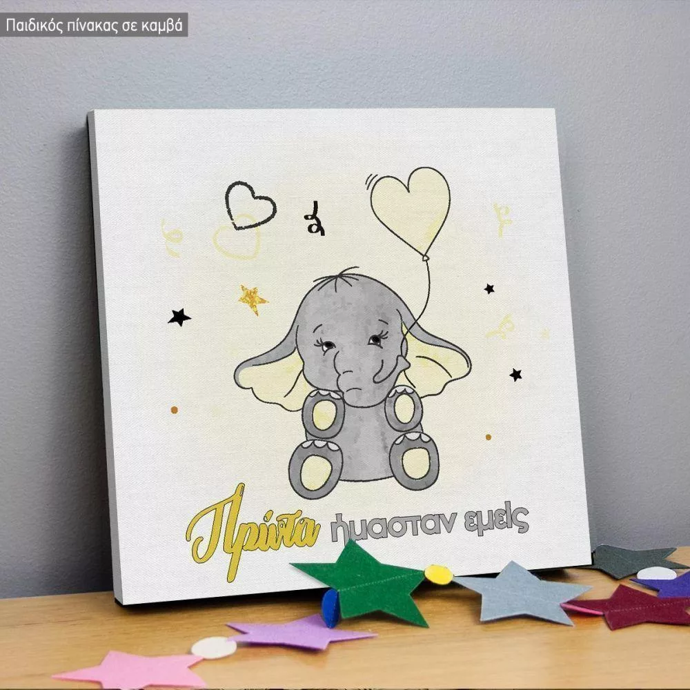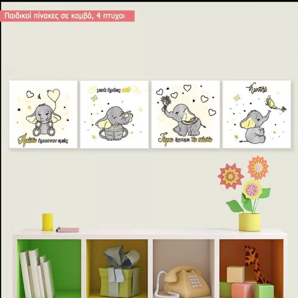 Canvas print First it was just us, little elephant, yellow, 4 panels