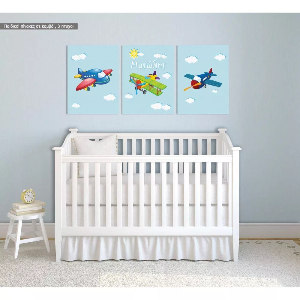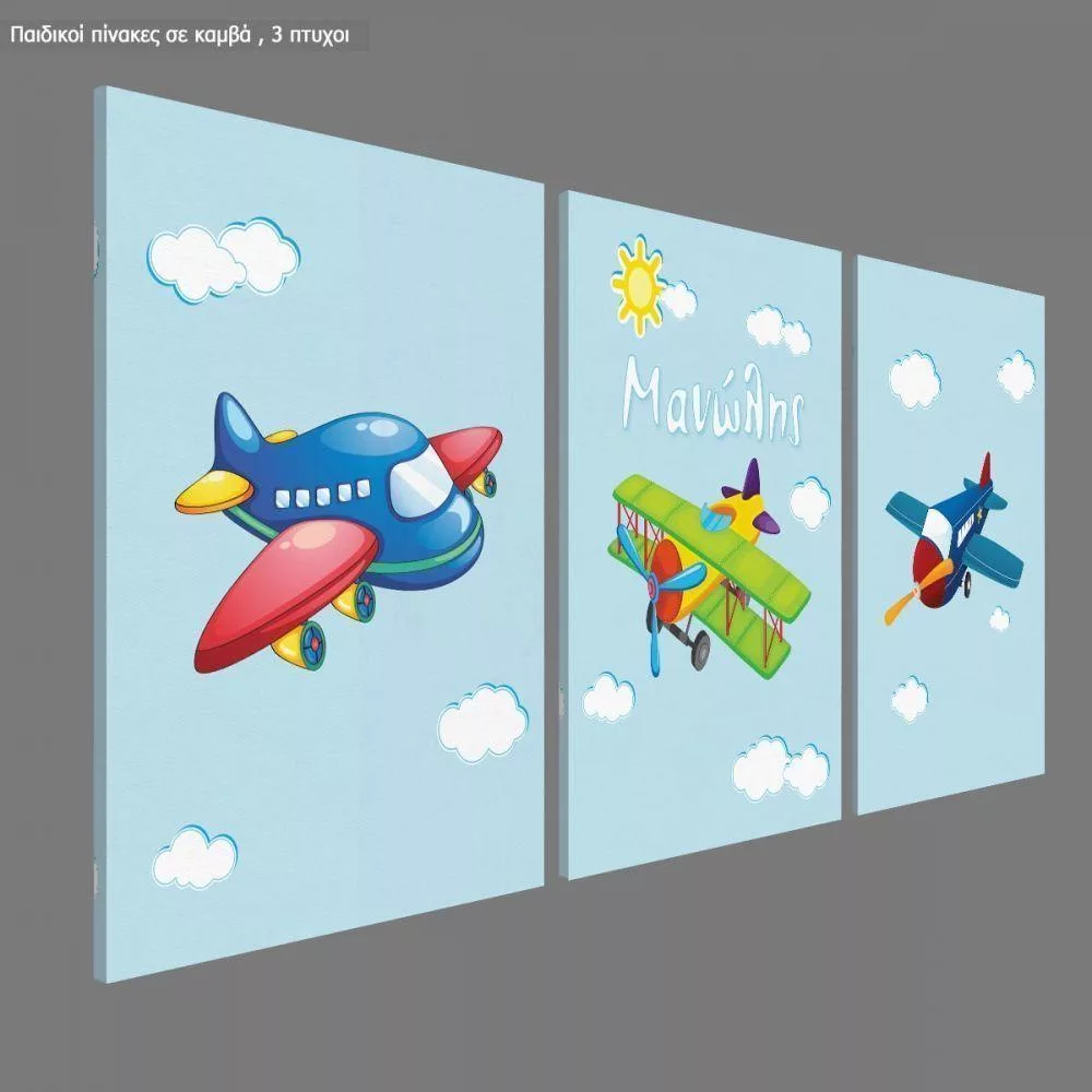 Kids canvas print Airplane, 3 panels