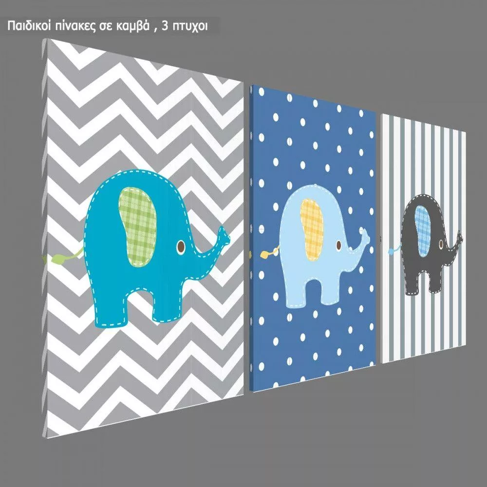 Kids canvas print Elephants, 3 panels