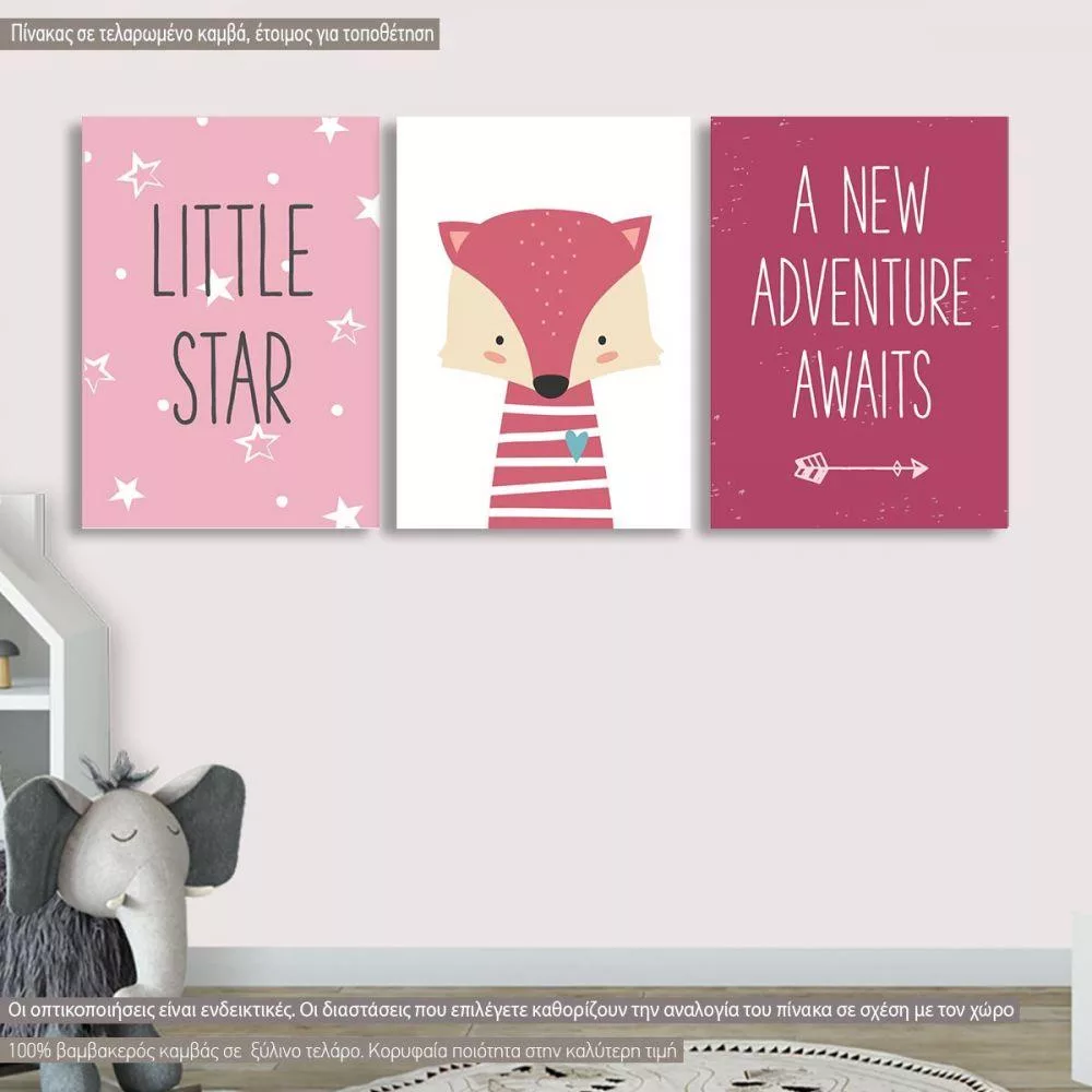 Canvas print Little star, new adventure girly, 3 panels