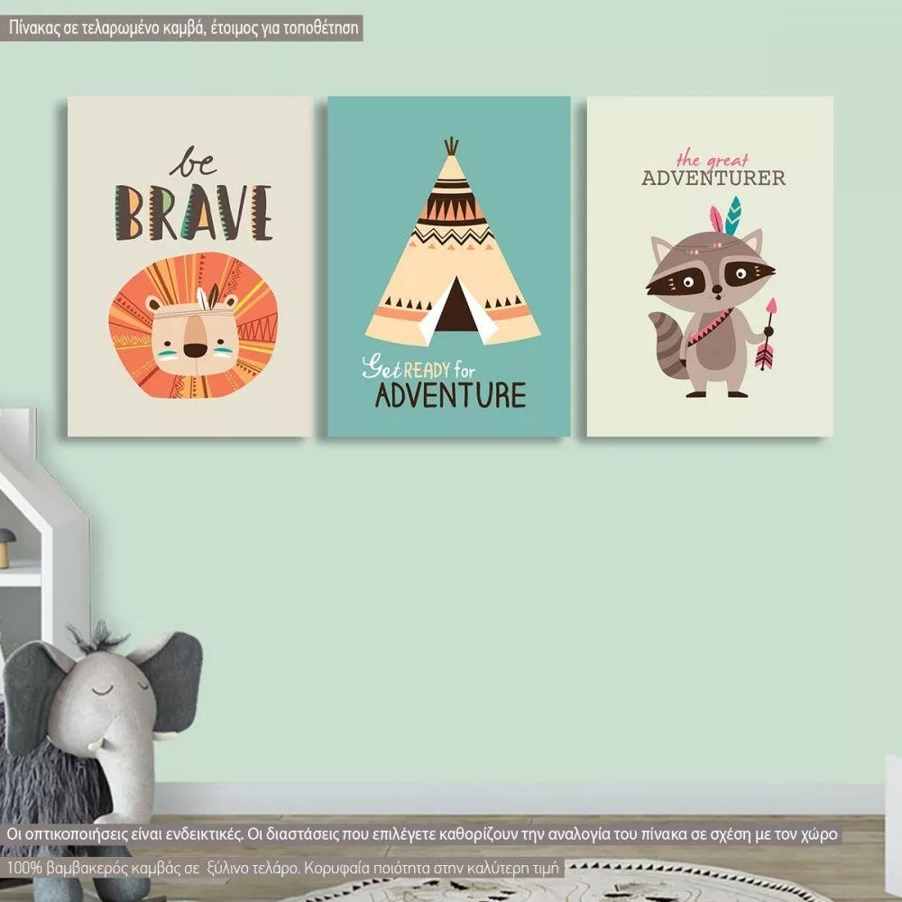 Kids canvas print The great adventurer, owl, bunny, 3 panels