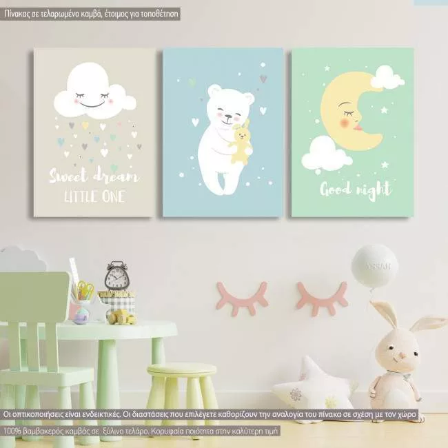 Canvas print Sweet dreams, teddy bear, 3 panels