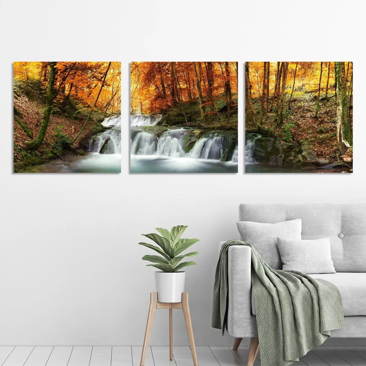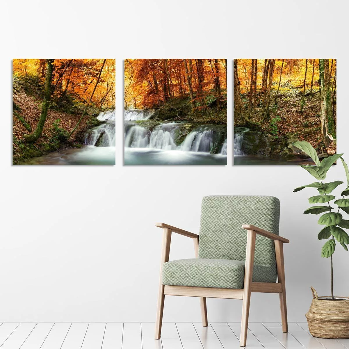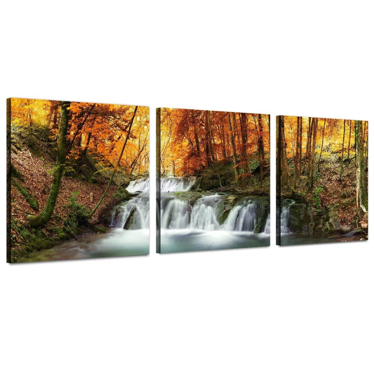 Canvas print Forest waterfall, 3 panels