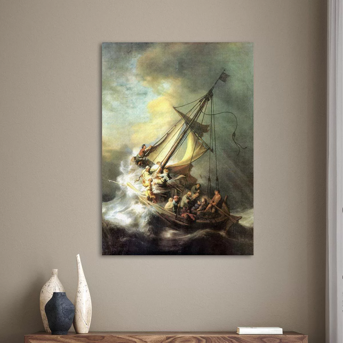 Canvas print Christ in the storm on the lake of Galilee, Rembrandt