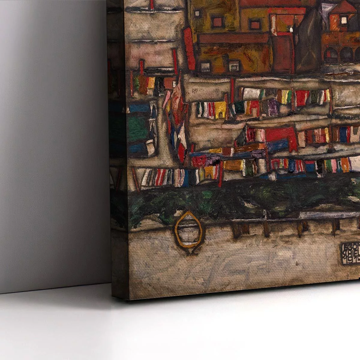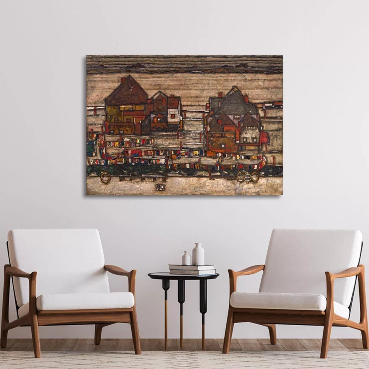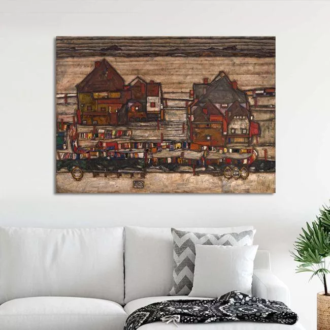 Canvas print Houses with laundry lines and suburban, Schiele Egon