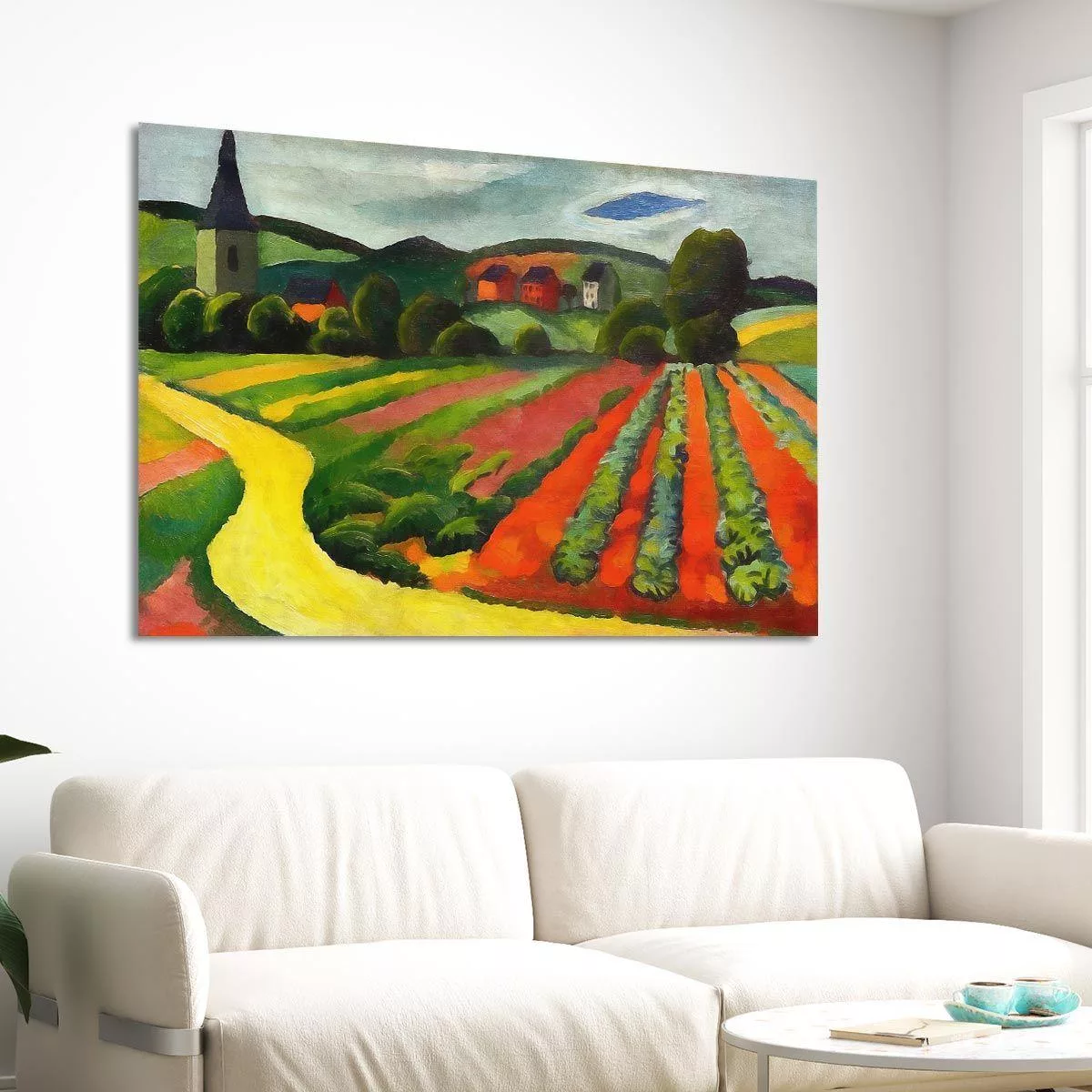 Canvas print Landscape with church and path, Macke August
