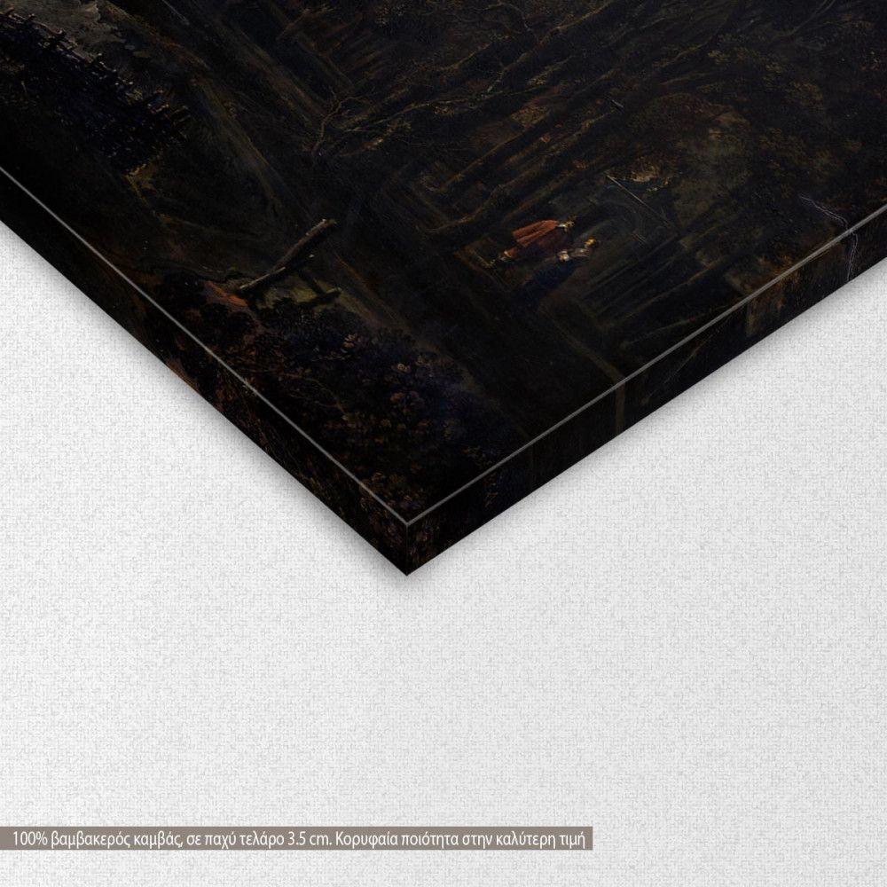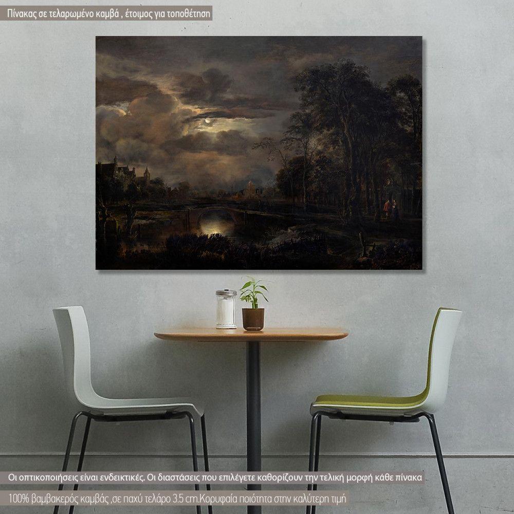 Canvas print Moonlit landscape with bridge, Aert van der Neer