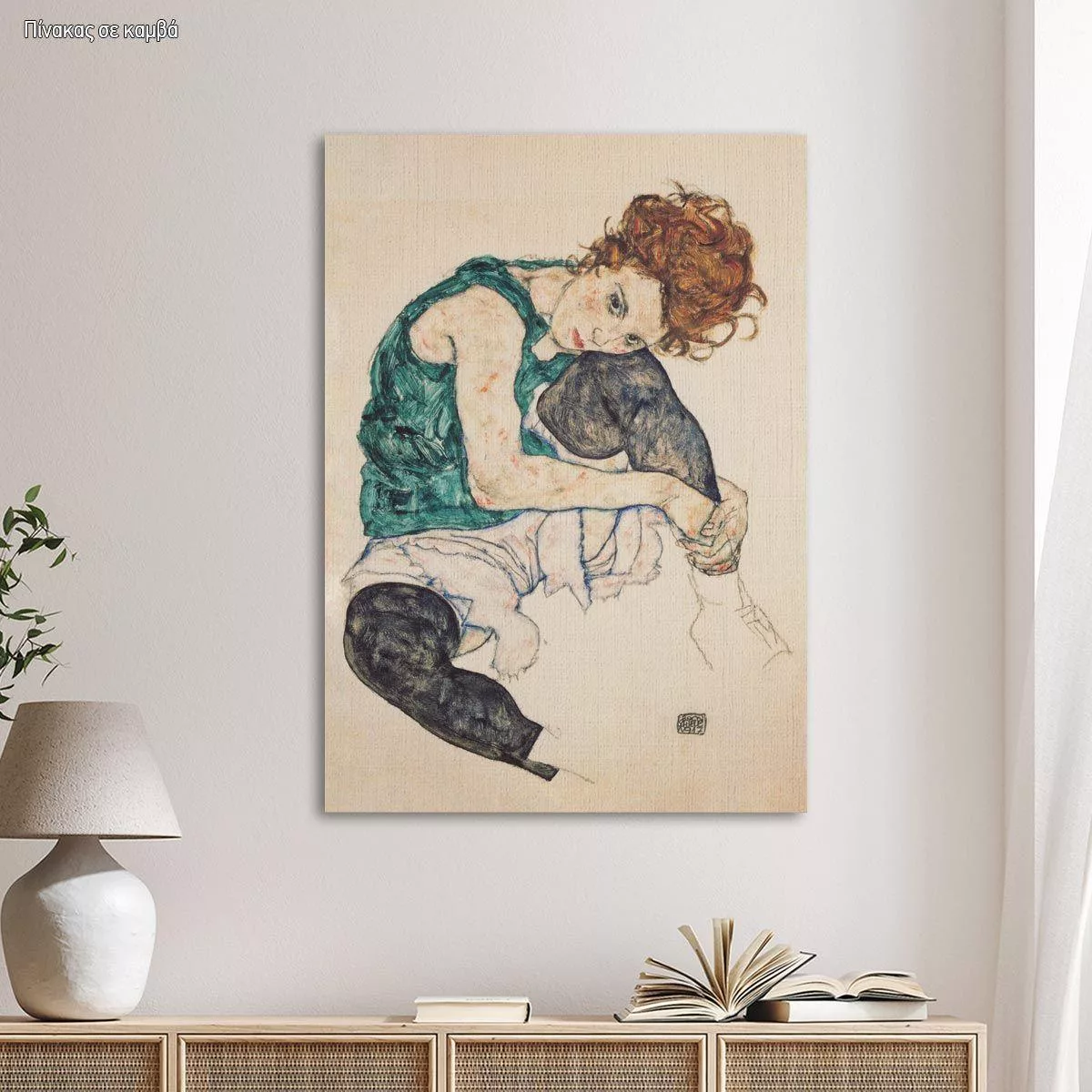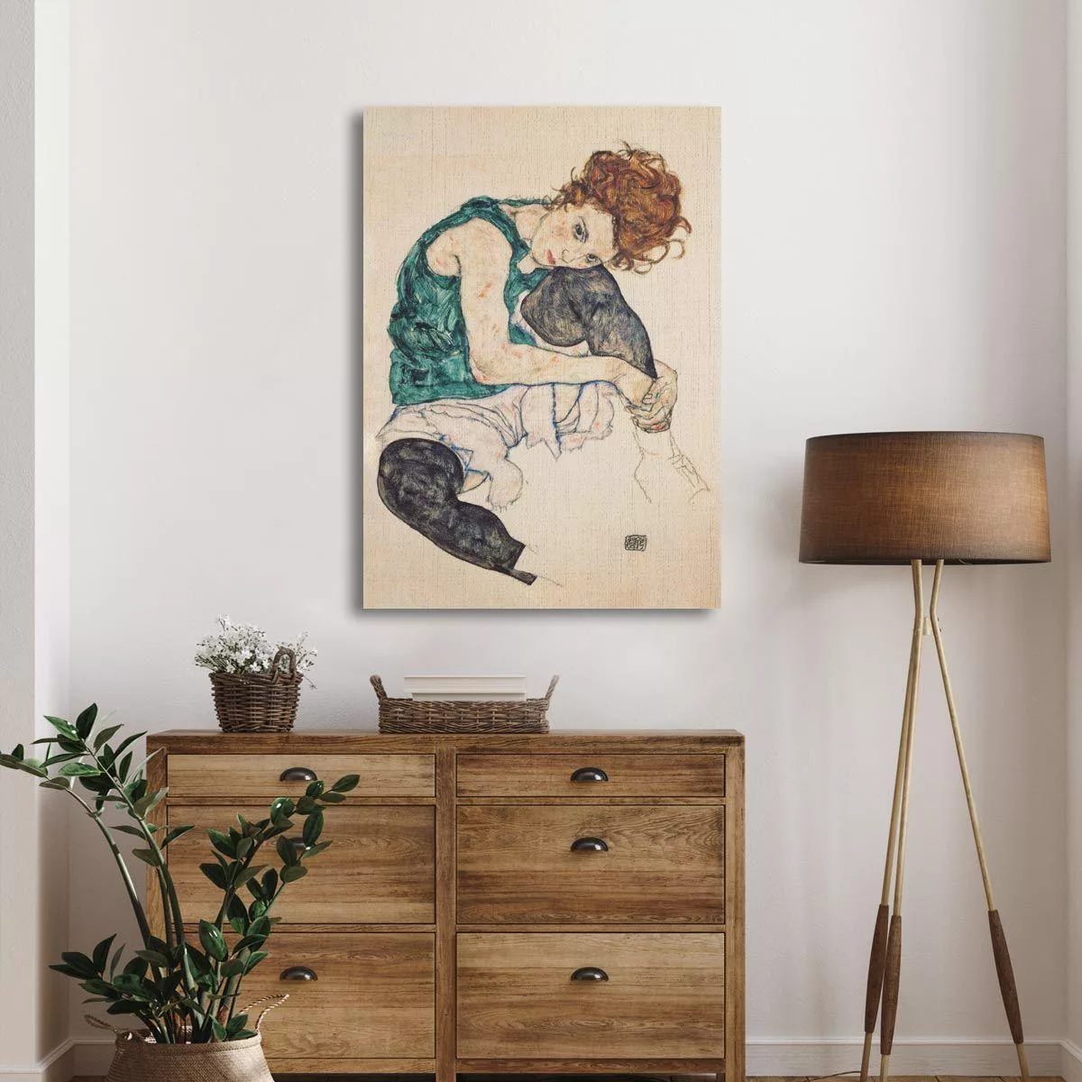 Canvas print Seated woman with bent knee, Schiele E,
