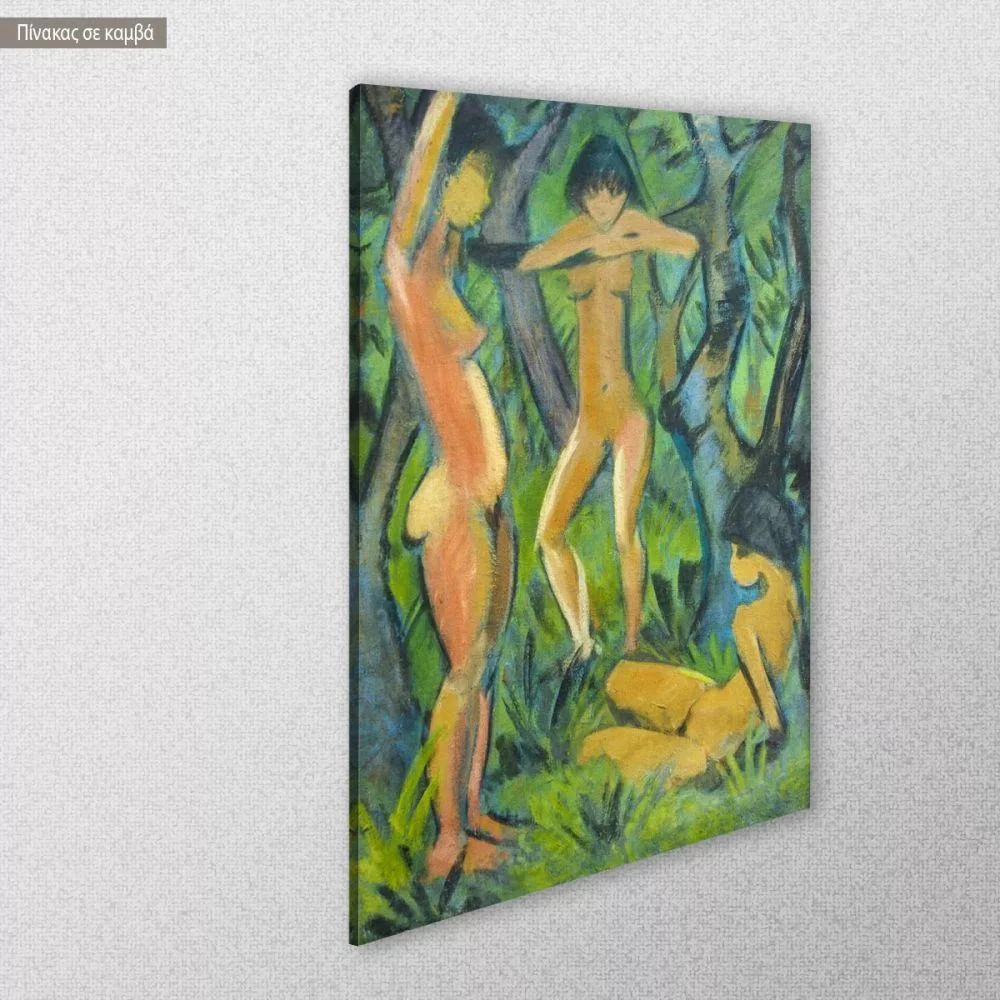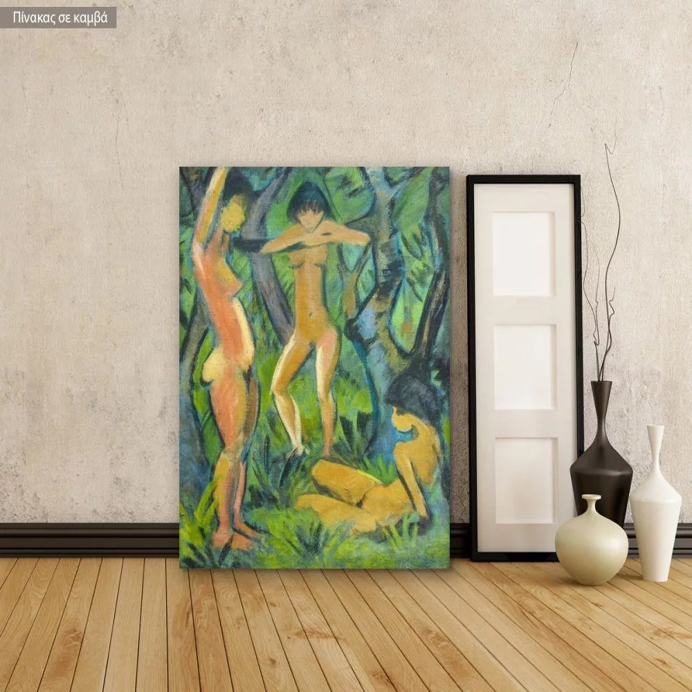 Canvas print Three nudes in the forest, reart (original by O. Mueller)
