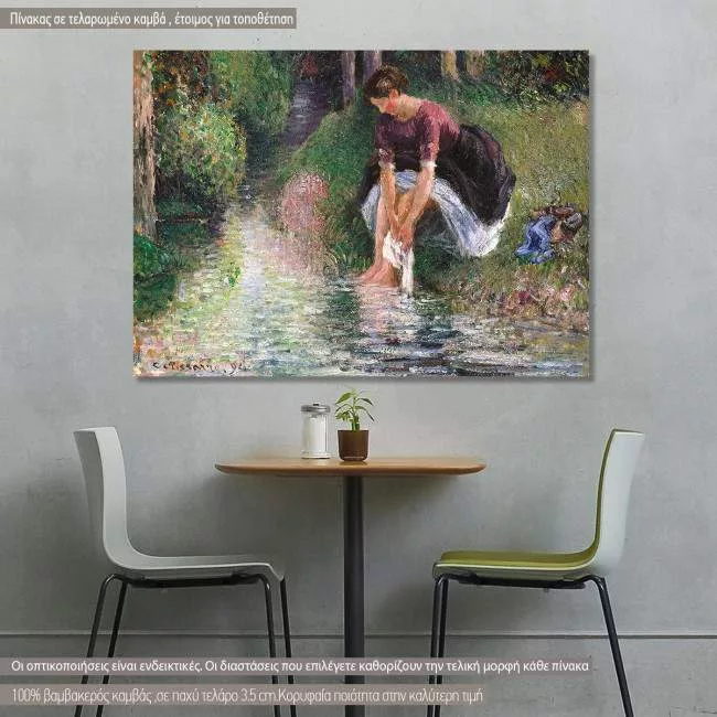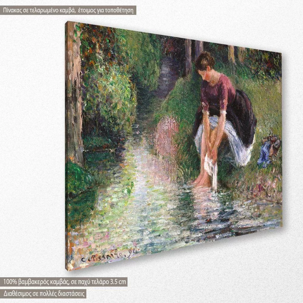 Canvas print Woman washing her feet in a brook, Pissarro C.