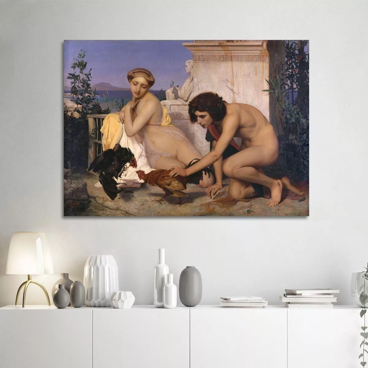 Canvas print Young Greeks attending a cock Fight, Jean-Léon Gérôme