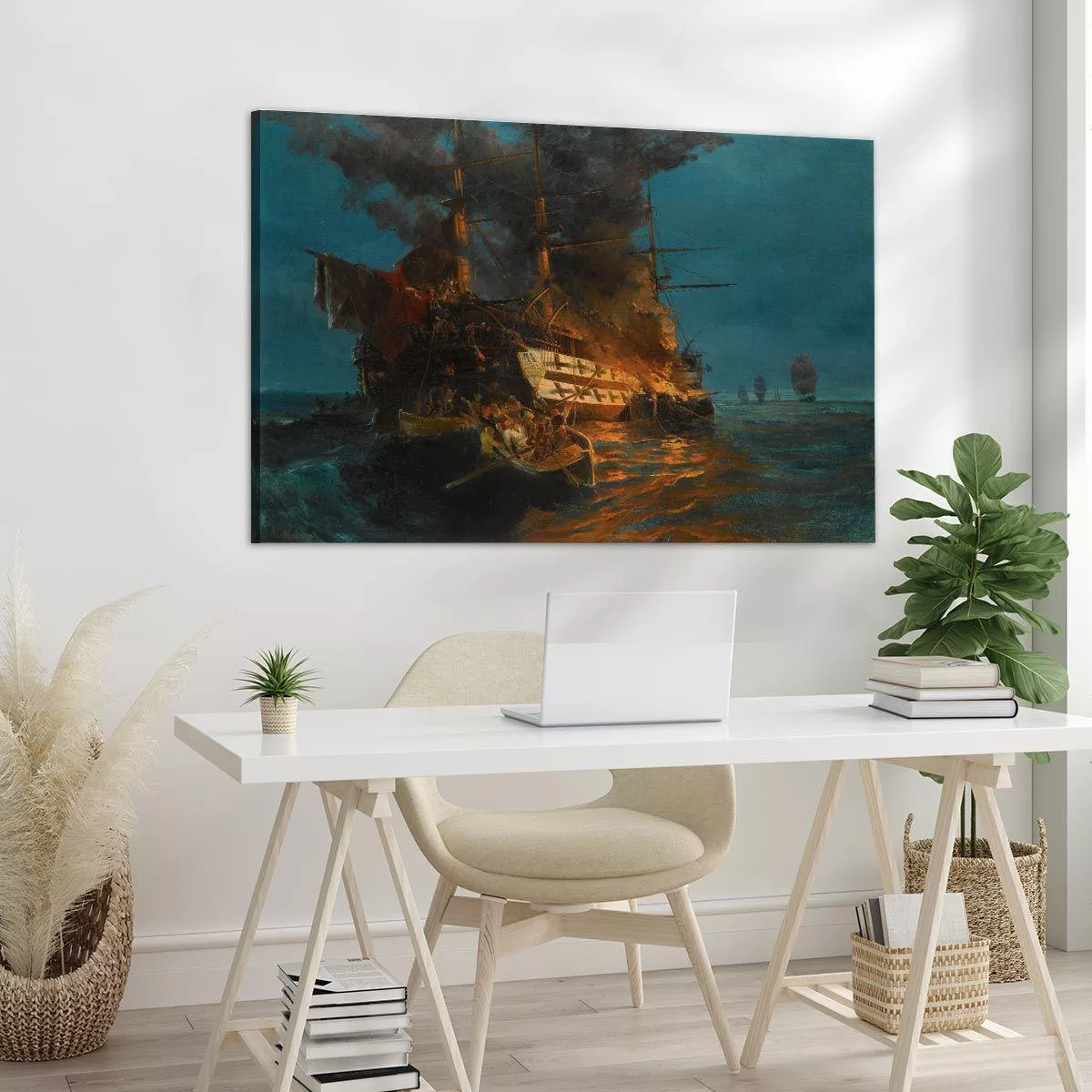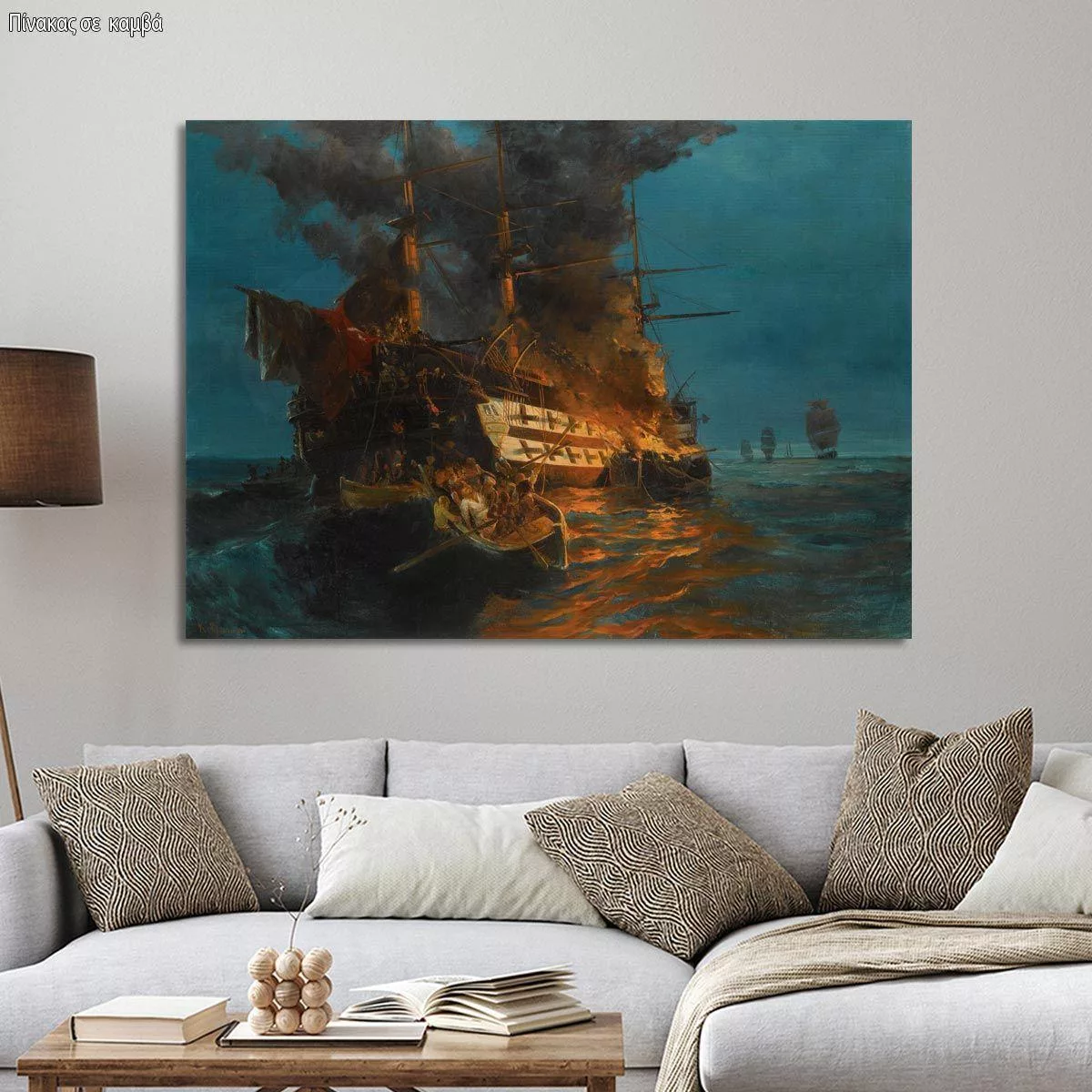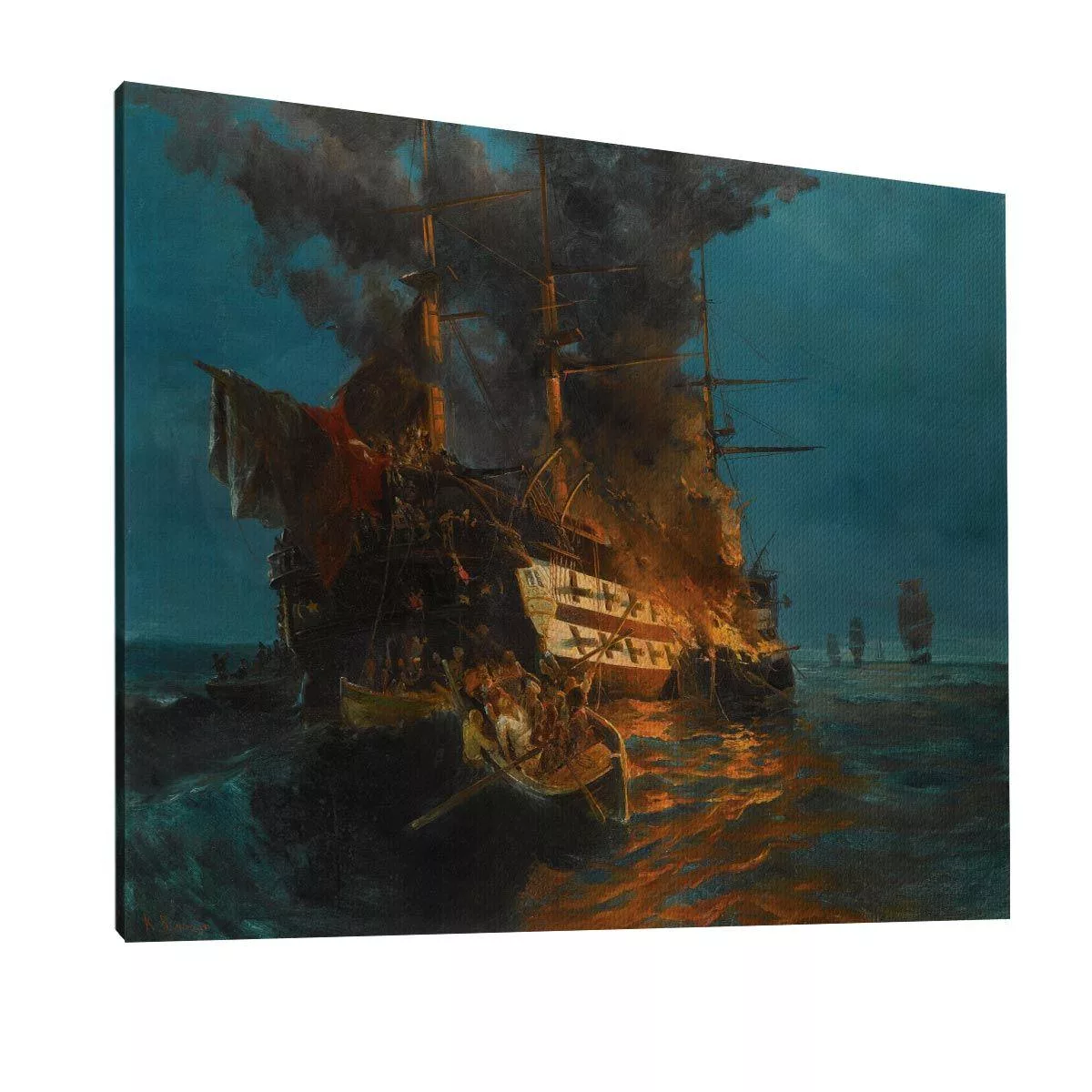 Canvas print Burning Turkish frigate, Volanakis