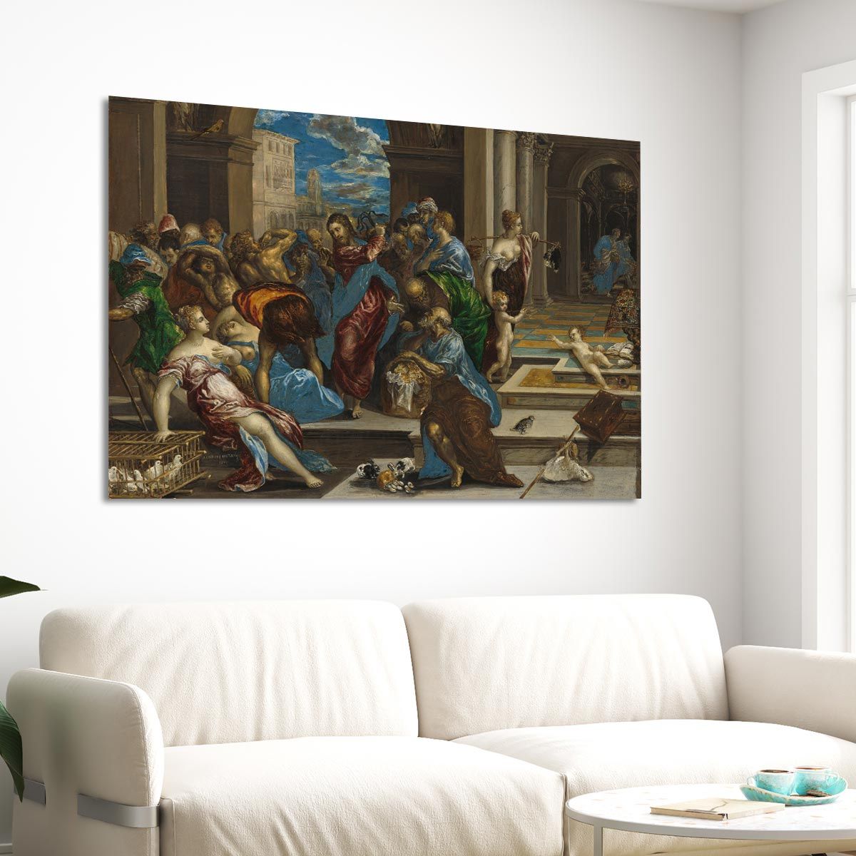 Canvas print Christ driving the money changers from the temple remastered, El Greco