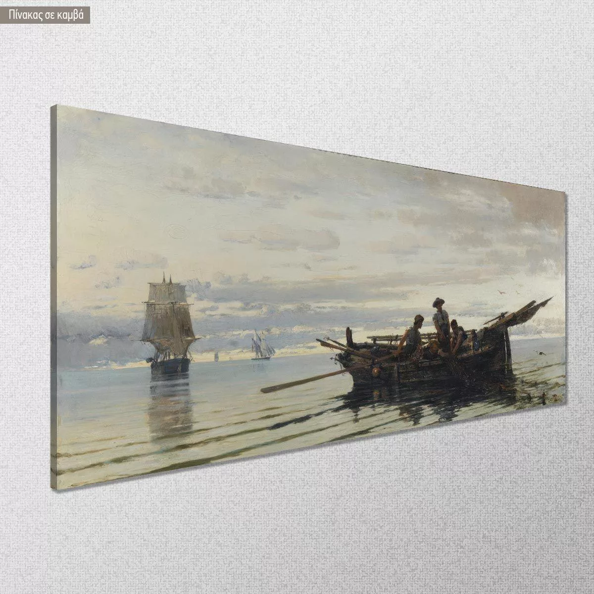 Canvas print Gathering the fishnets, Volanakis panoramic