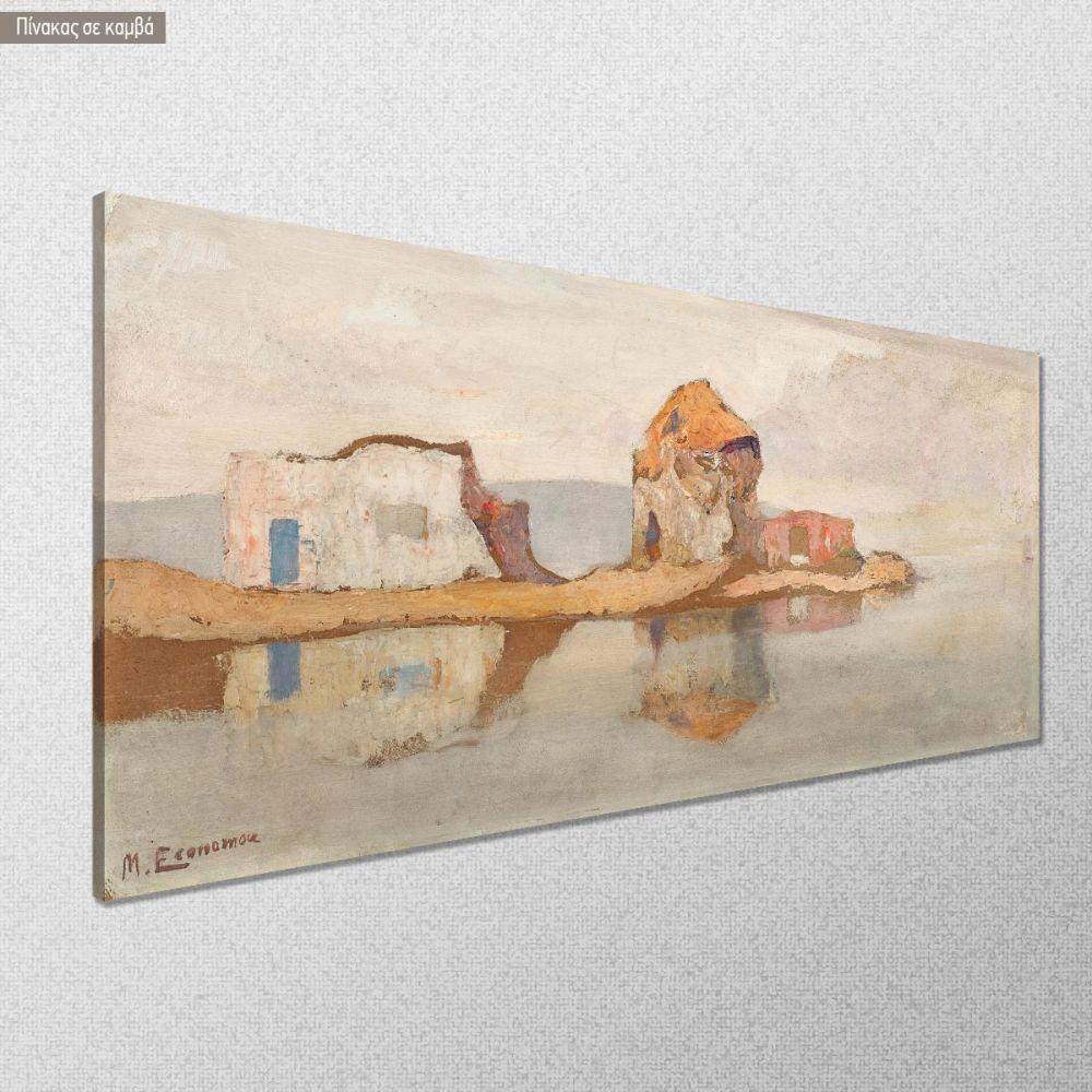 Canvas print Old mill with houses, Oikonomou, panoramic