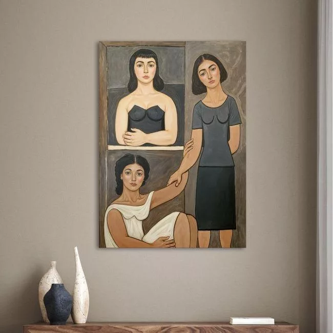 Canvas print Three young women reart (original Sikeliotis) Framed canvas View 5