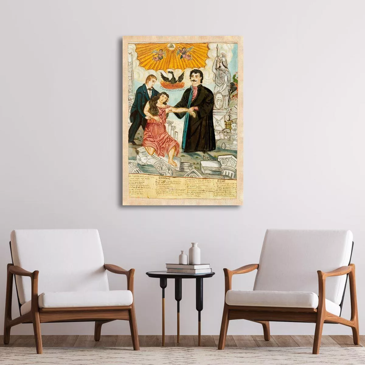 Canvas print Korais and Feraios save wounded Hellas, Theofilos