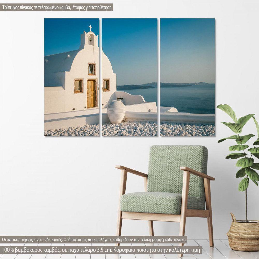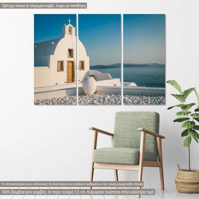 Canvas print Greek whitewashed church, 3 panels