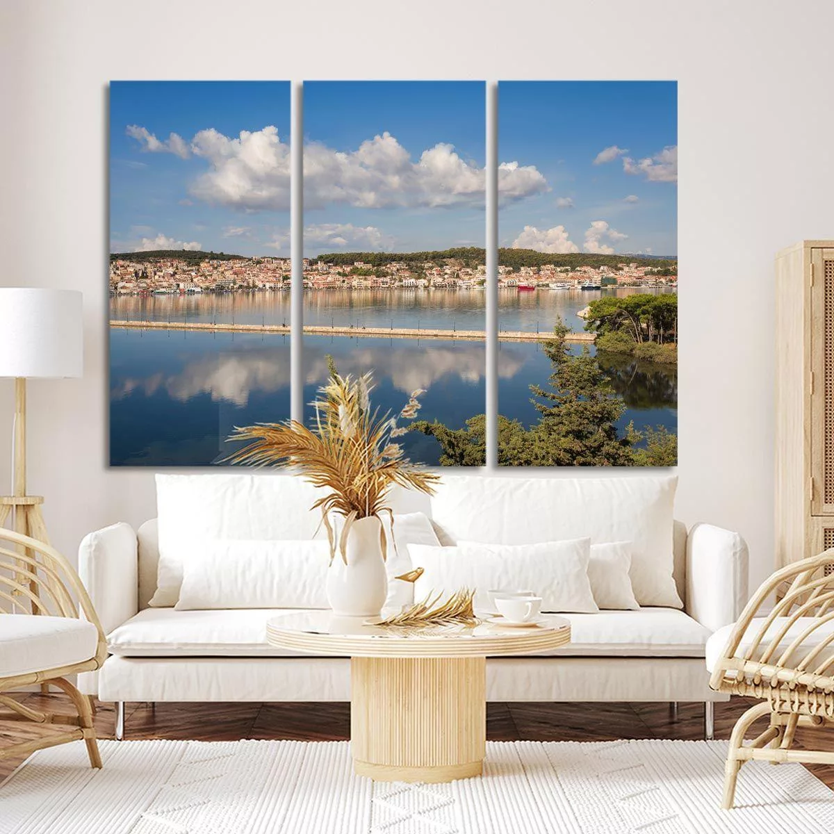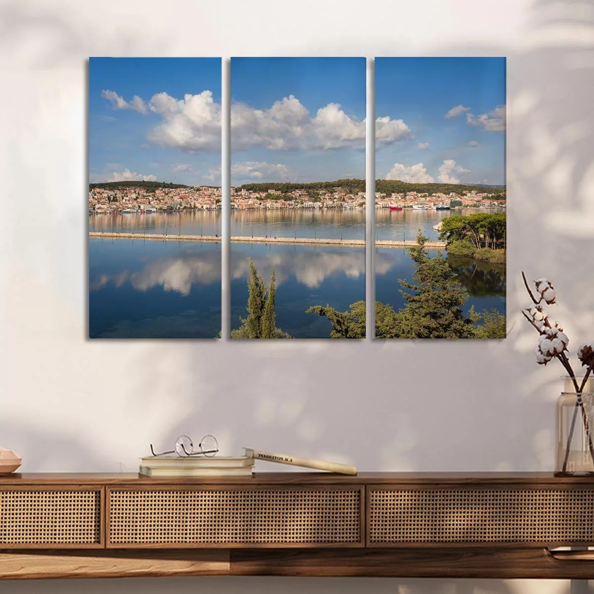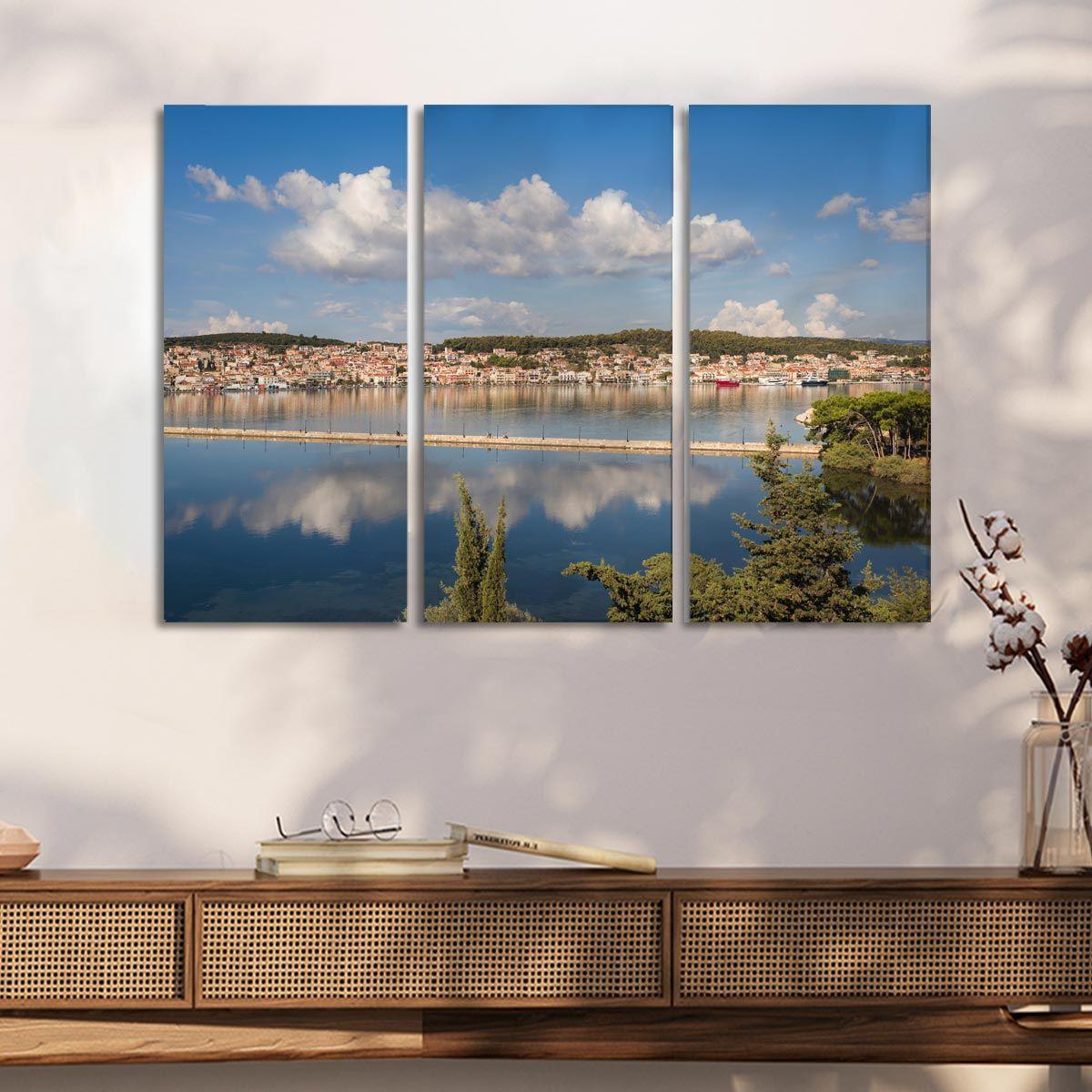 Canvas print Sunset view of greek city of Argostoli, 3 panels