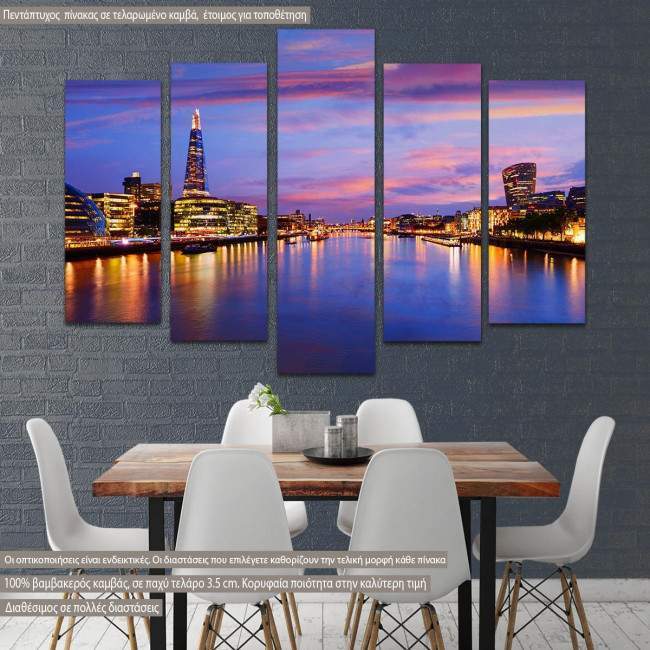Canvas print London skyline sunset City Hall five panels