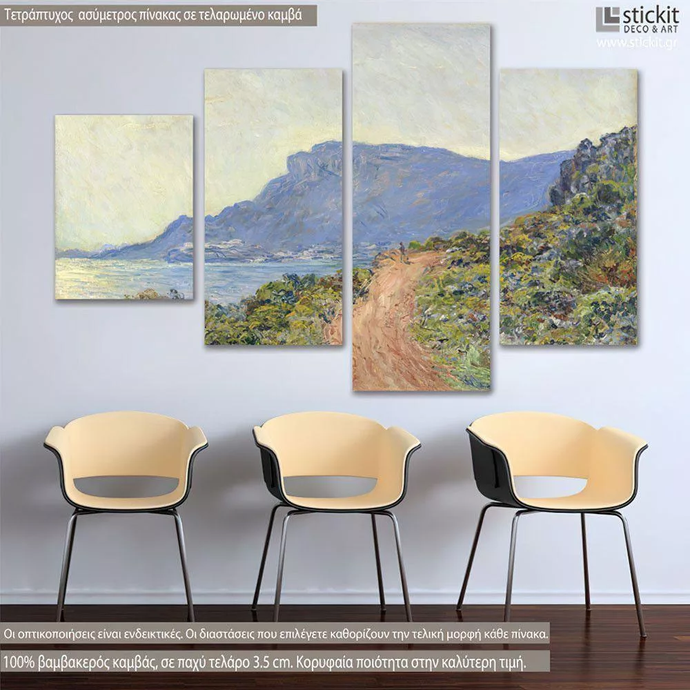 Canvas print La corniche de Monaco, Monet, four panels