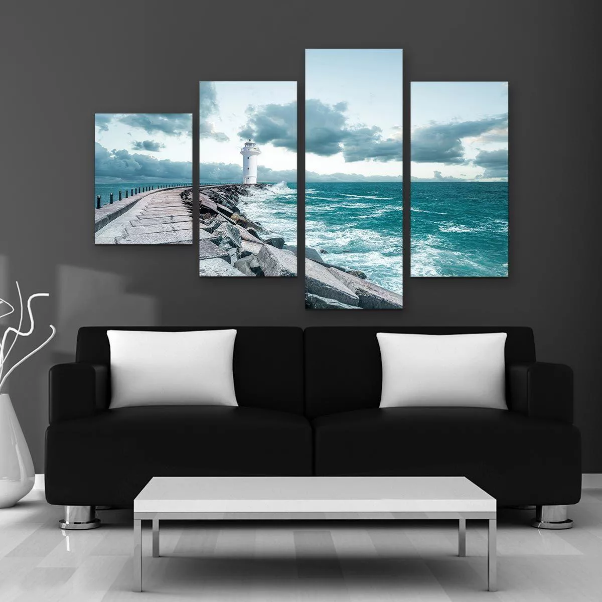 Canvas print lighthouse, love is the way, 3 panels