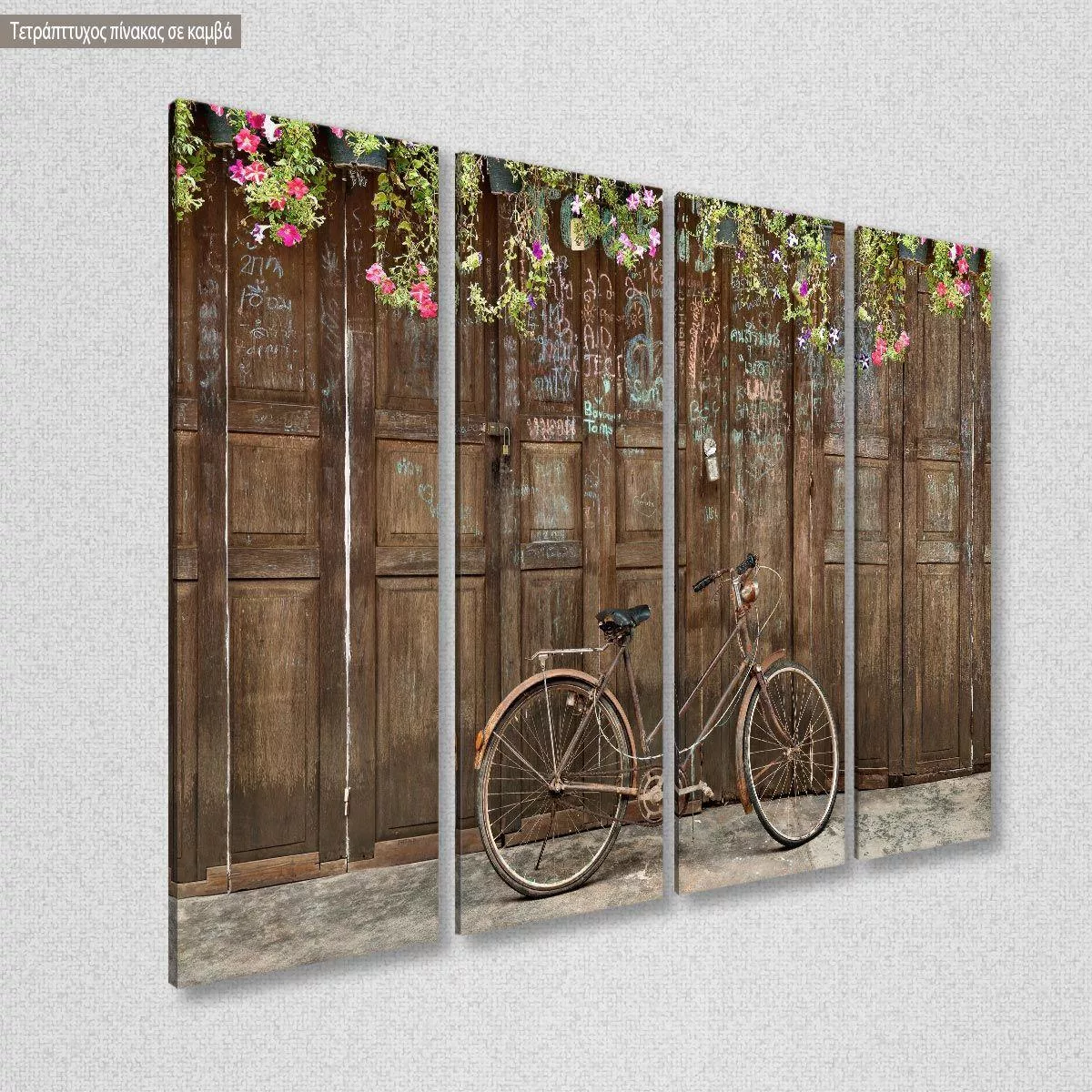 Canvas print Old style rusty brown bicycle, four panels