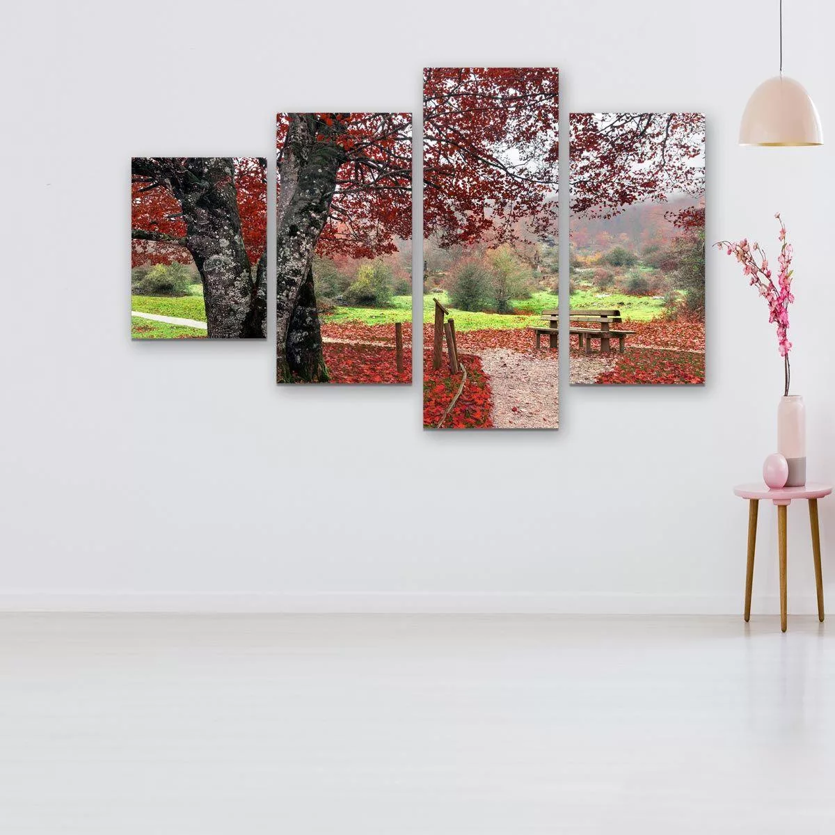 Canvas print Red leaves, four panels